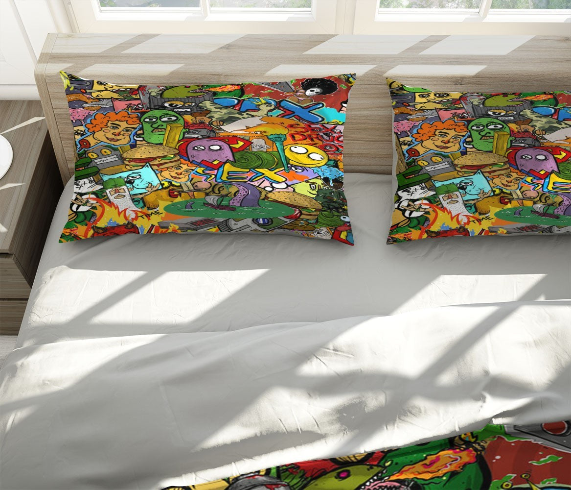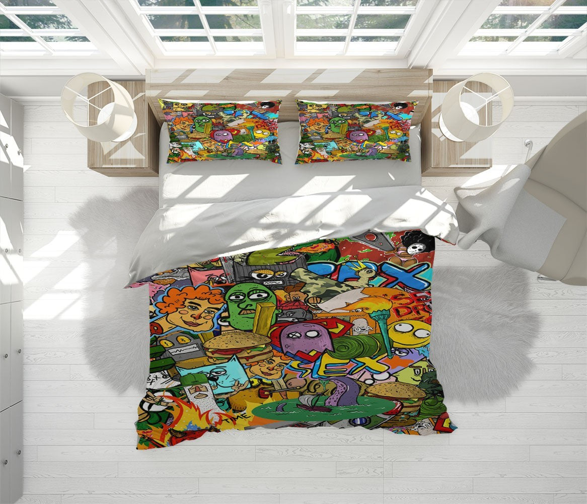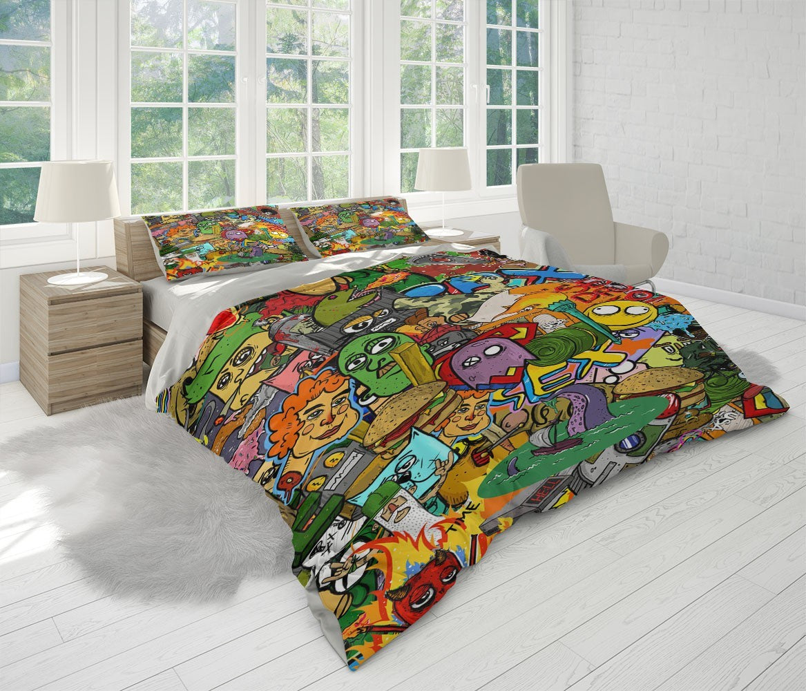 Hand Painted Duvet Cover Set W Pillow Cover, Multicolour Graffiti Graffiti 3D Quilt Cover, Single Double Queen King Size Doona Cover