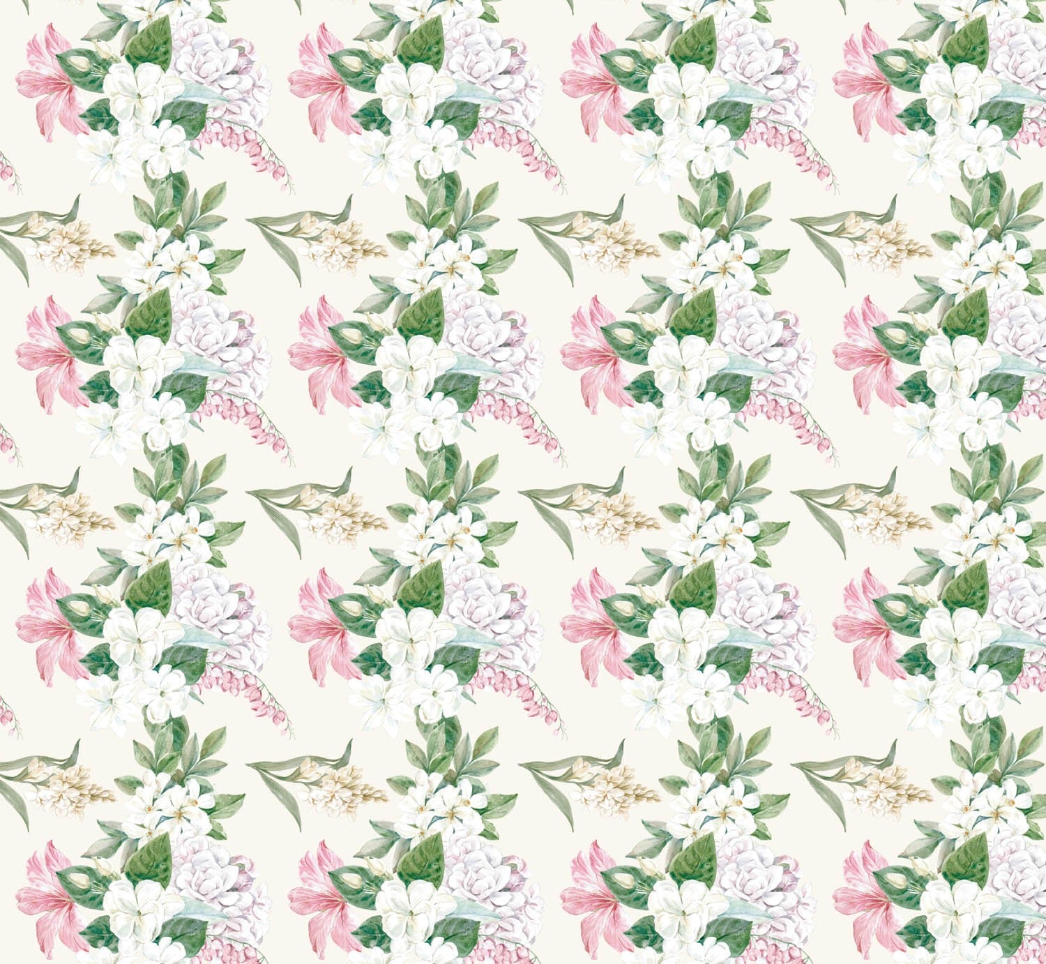 Hand-Painted Patterne Floral Flowers Creamy Wallpaper Mural