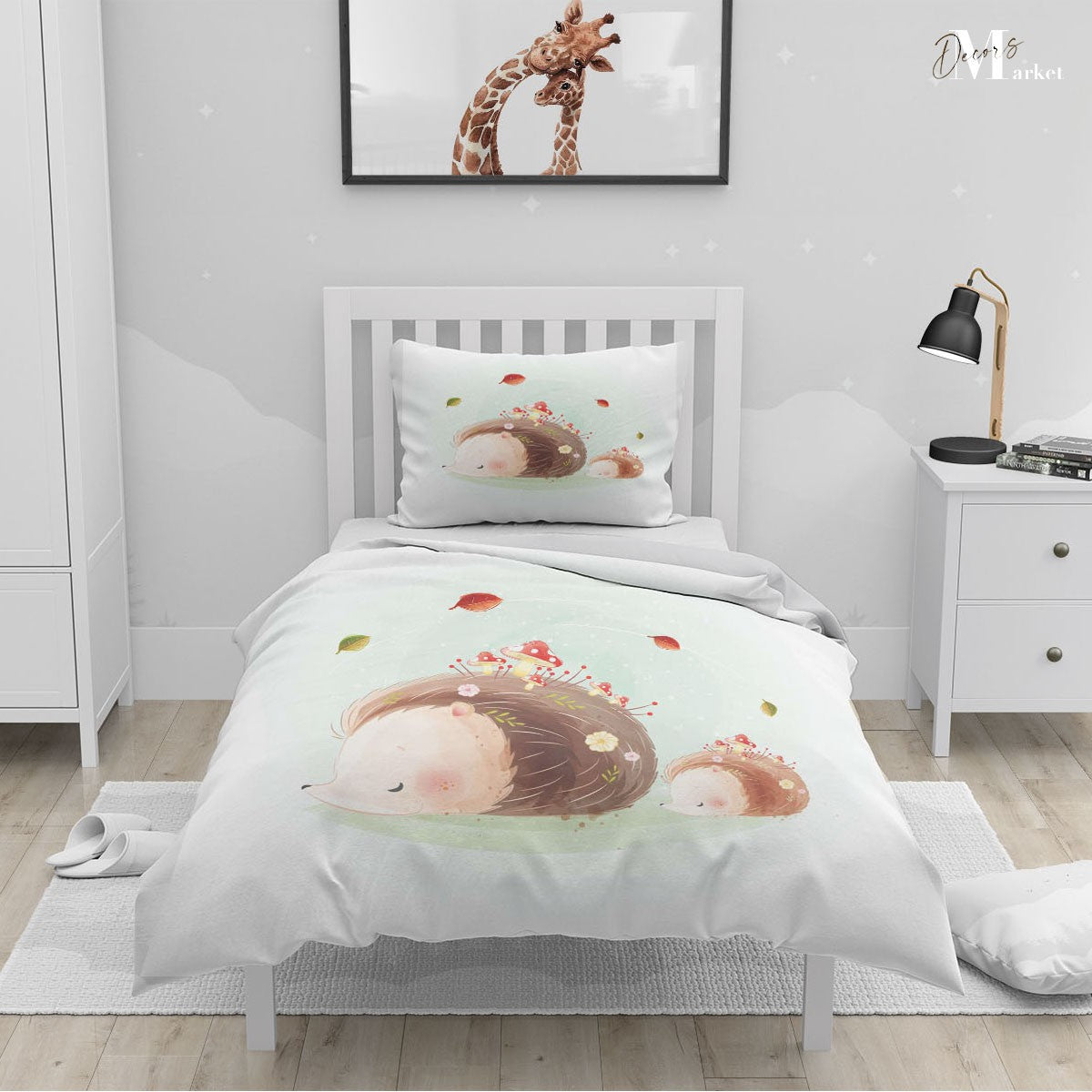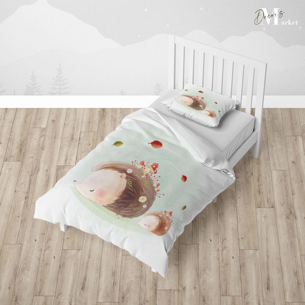 Hedgehog Sweet Dream Duvet Cover Set w Pillow Cover, Creamy Kids Cartoon 3D Quilt Cover, Single Double Queen King Size Doona Cover