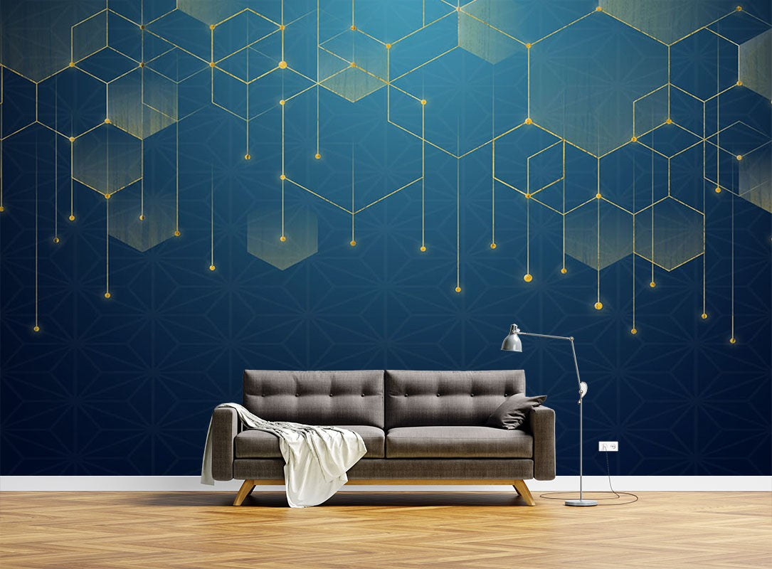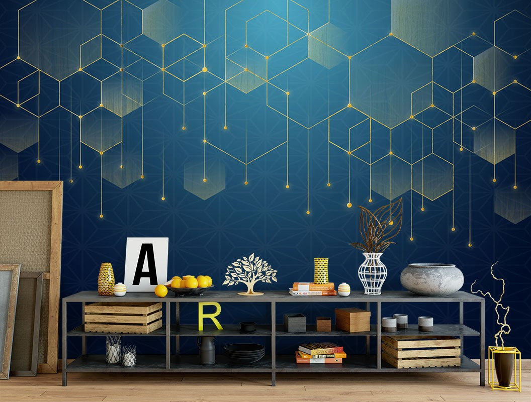 Hexagons Patterns Texture Blue Wallpaper Mural,Self-Adhesive Peel And Stick 3D Wall Decor,Removable Designer Wall Decor