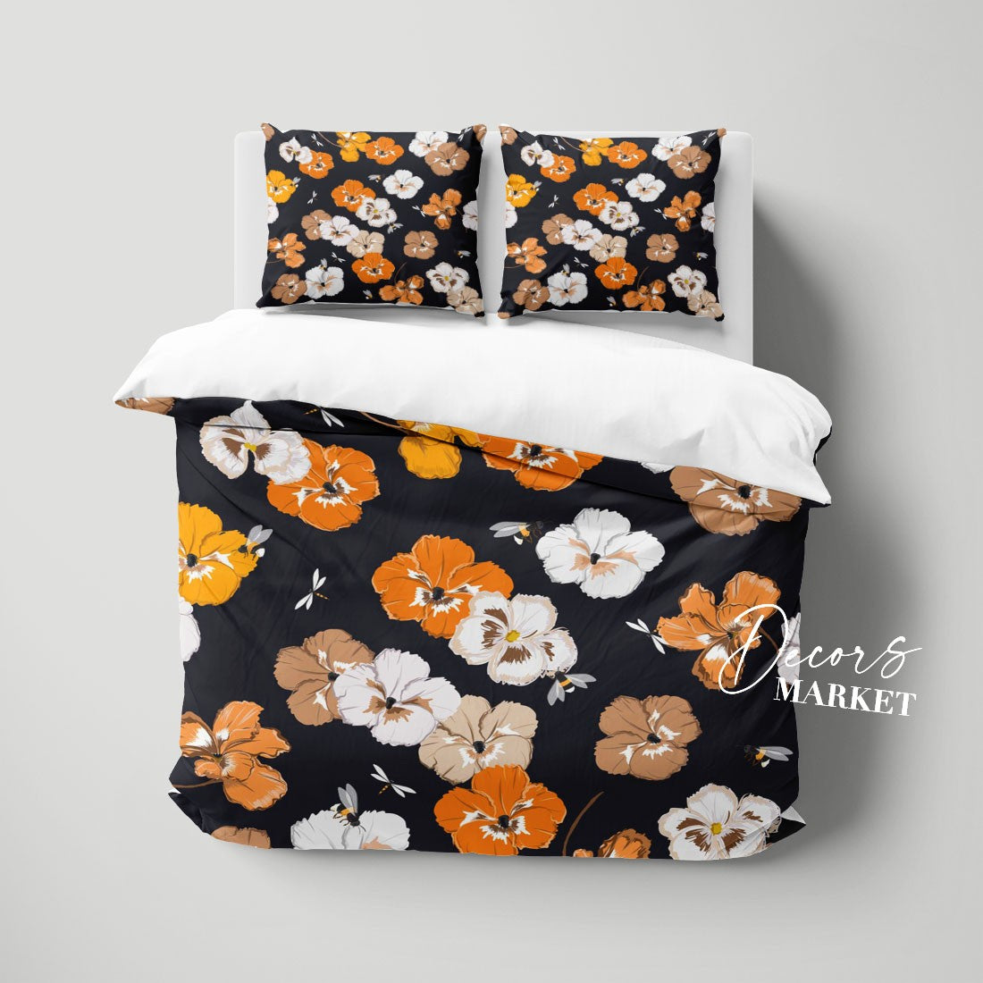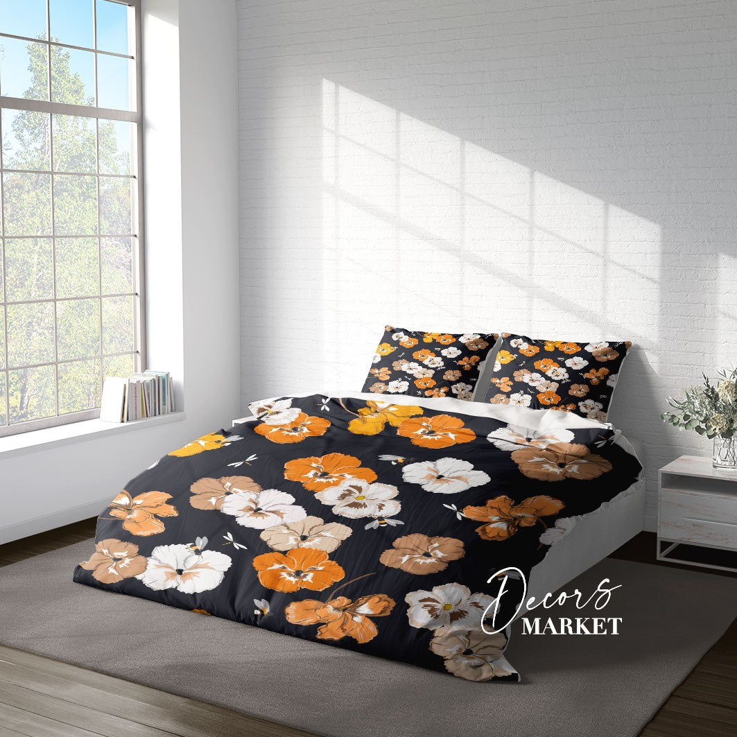 Hibiscus Blossom Pattern Duvet Cover Set w Pillowcases, Dark Floral Flowers 3D Quilt Cover, 3pc Single Double Queen King Size Doona Cover