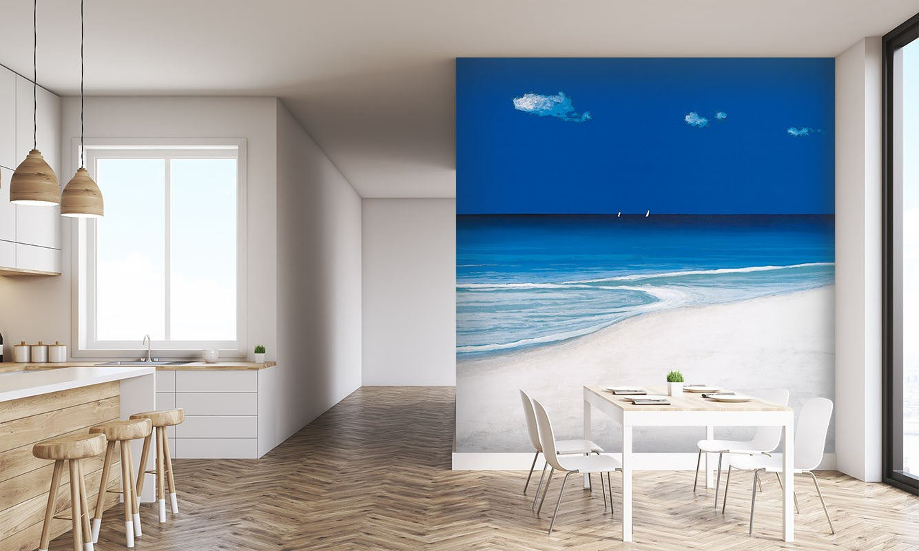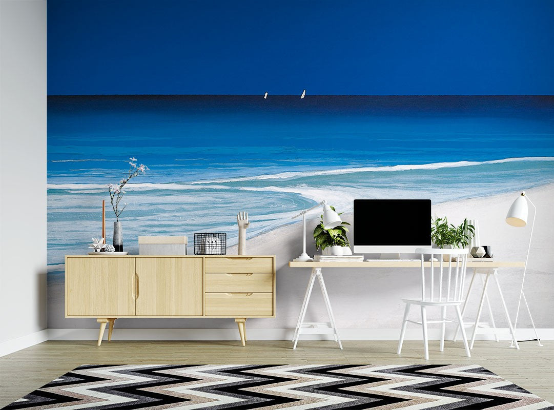 Horizon Sailing Beach Blue Wallpaper Mural,Self-Adhesive Peel And Stick 3D Wall Art,Bedroom Australian Company Wall Decor