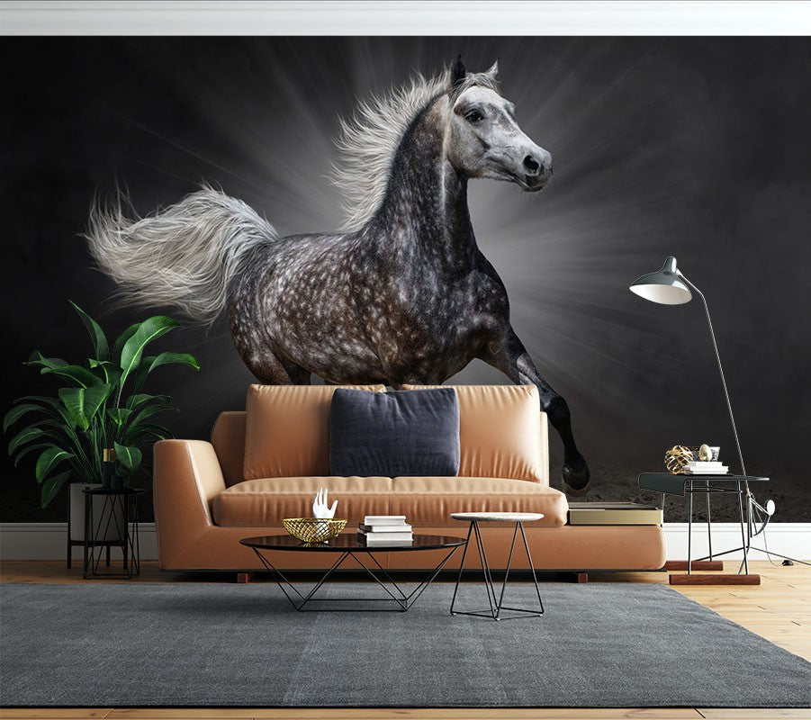 Horse Animals Horses Black&White Wallpaper Mural,Self-Adhesive Peel And Stick 3D Wall Art,Removable Designer Wall Decor