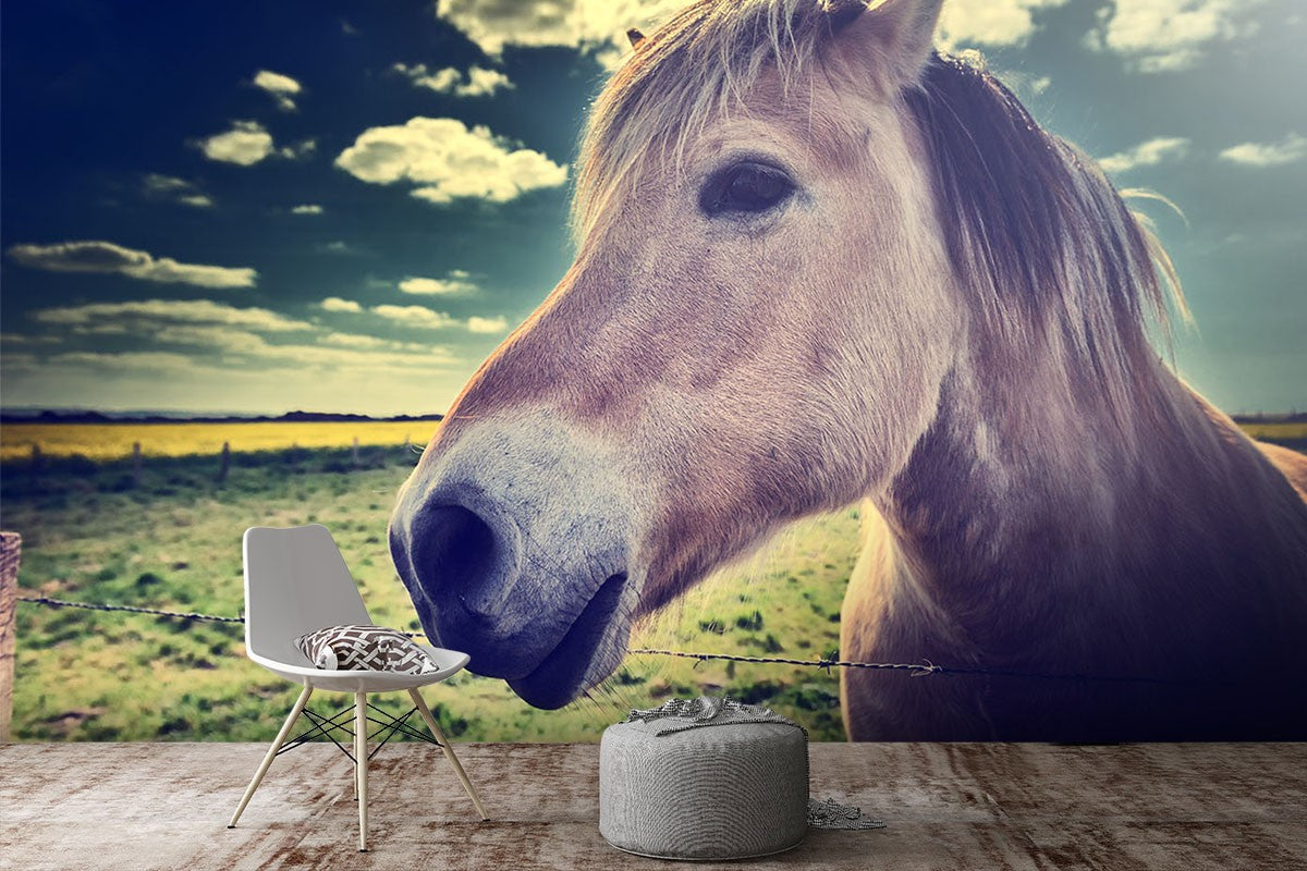 Horse Animals Horses Brown Wallpaper Mural,Self-Adhesive Peel And Stick 3D Wall Mural,Removable Designer Wall Decor
