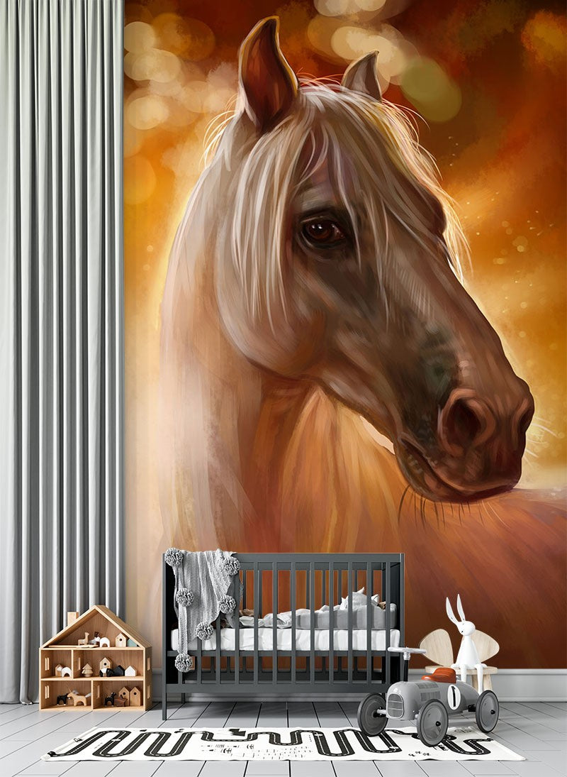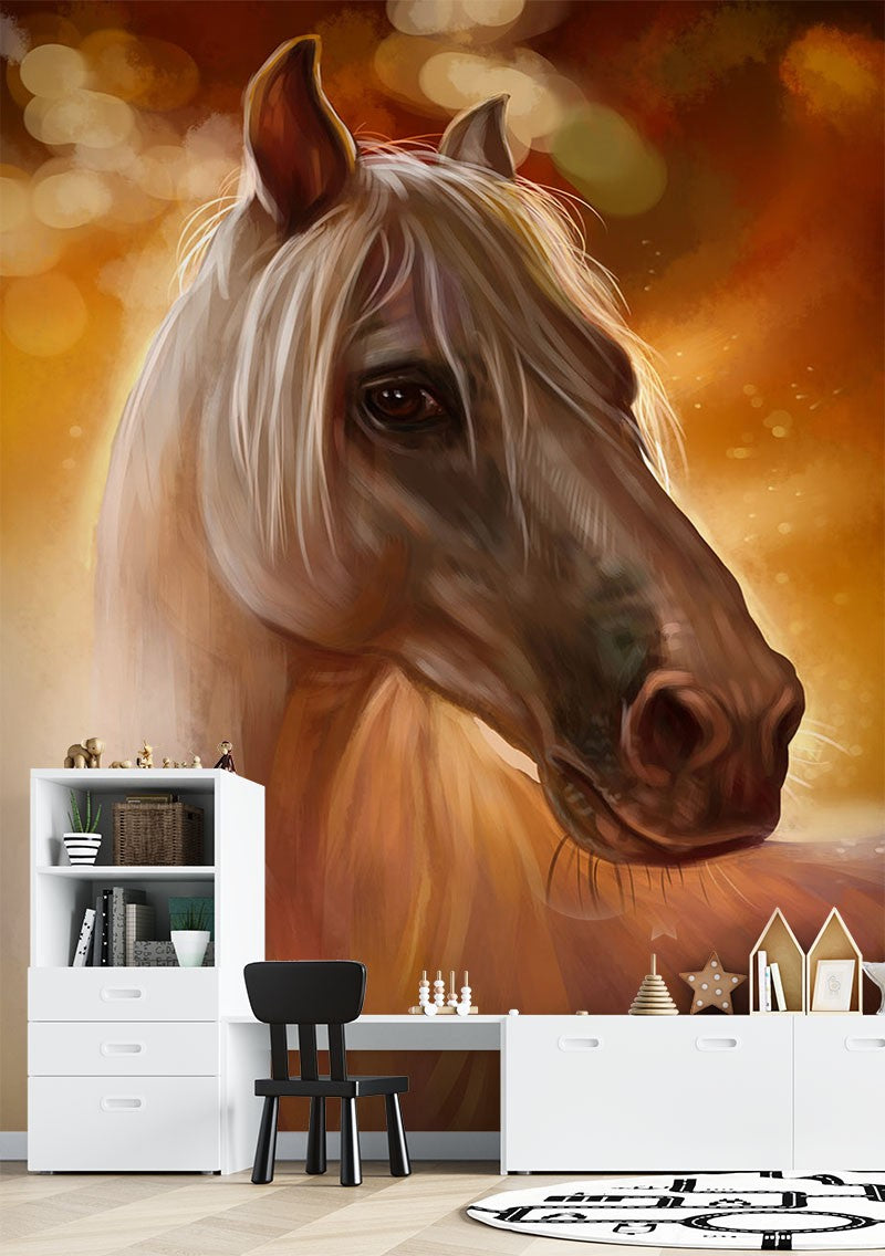 Horse Painting Kids Animal Orange Wallpaper Mural,Self-Adhesive Peel And Stick 3D Wall Decal,Removable Australian Company Wall Decor