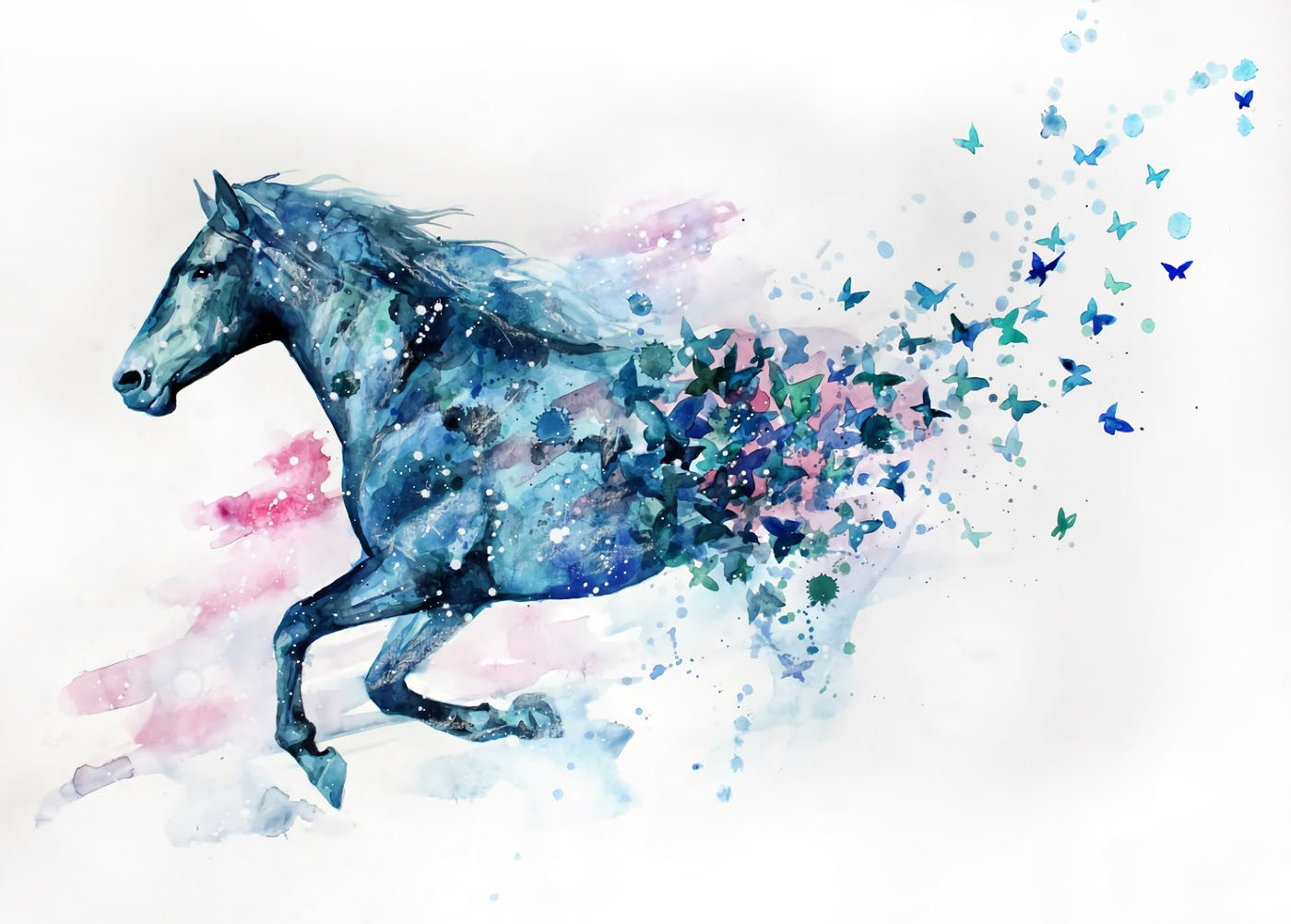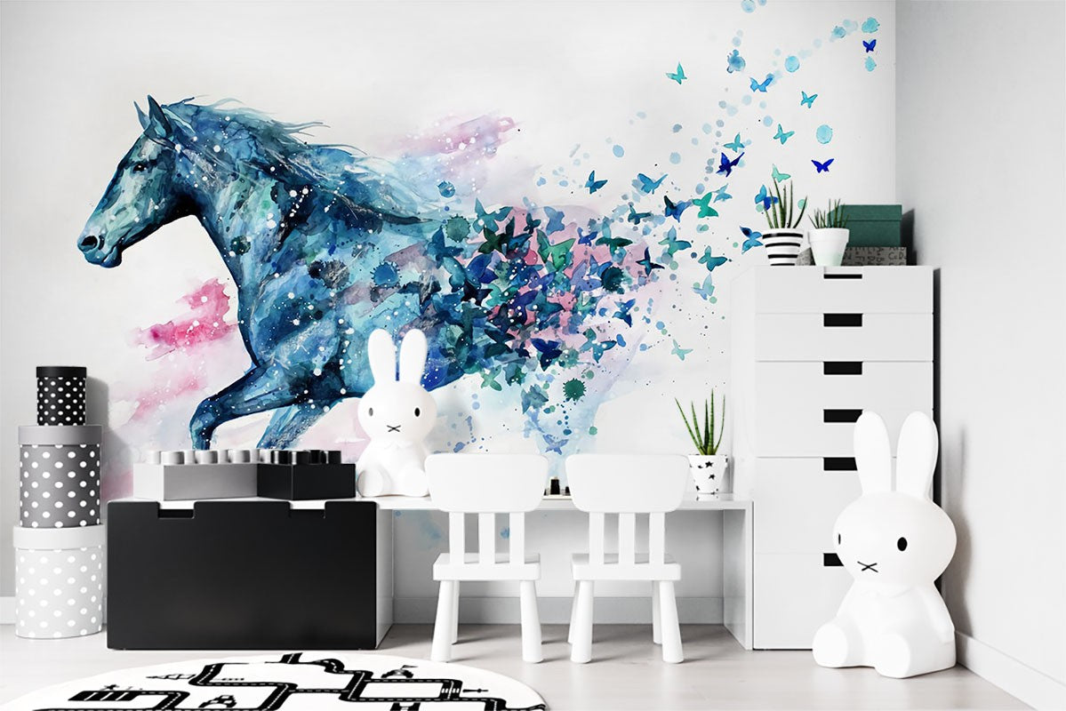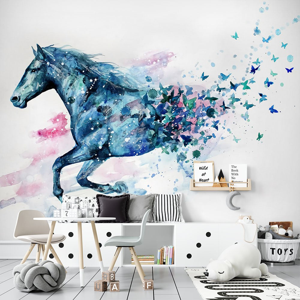 Horse Running Kids Animal Blue Wallpaper Mural,Self-Adhesive Peel And Stick 3D Wall Art,Removable Bedroom Wall Decor