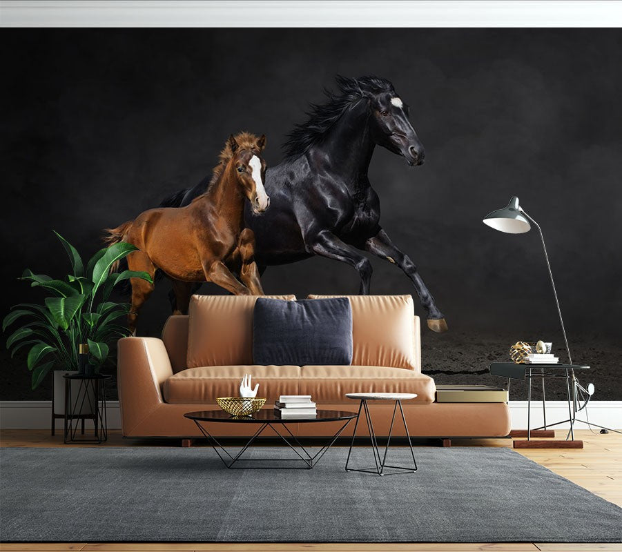 Horses Animals Black Wallpaper Mural,Self-Adhesive Peel And Stick 3D Wall Art,Australian Company Bedroom Wall Decor