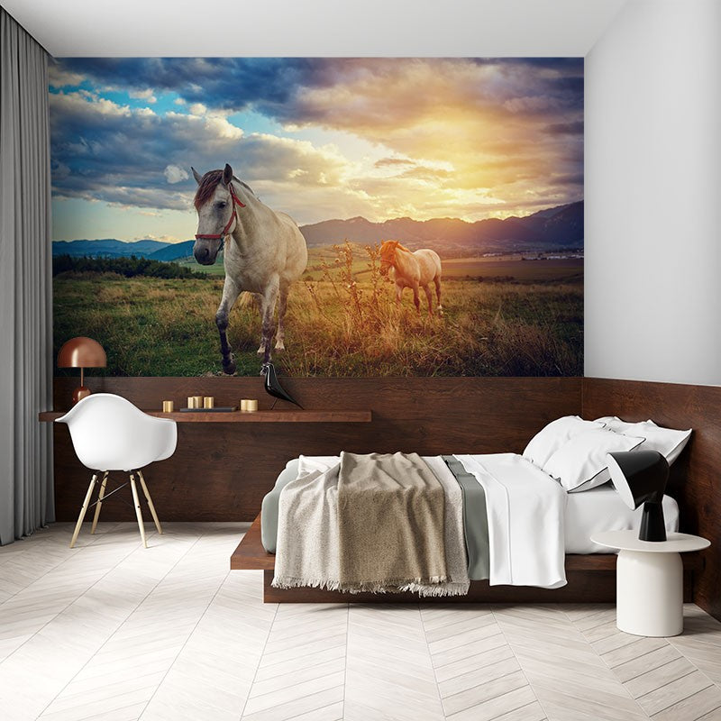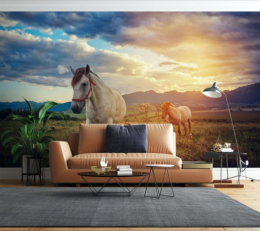 Horses Animals Bright Wallpaper Mural,Self-Adhesive Peel And Stick 3D Wall Paper,Bedroom Designer Wall Decor
