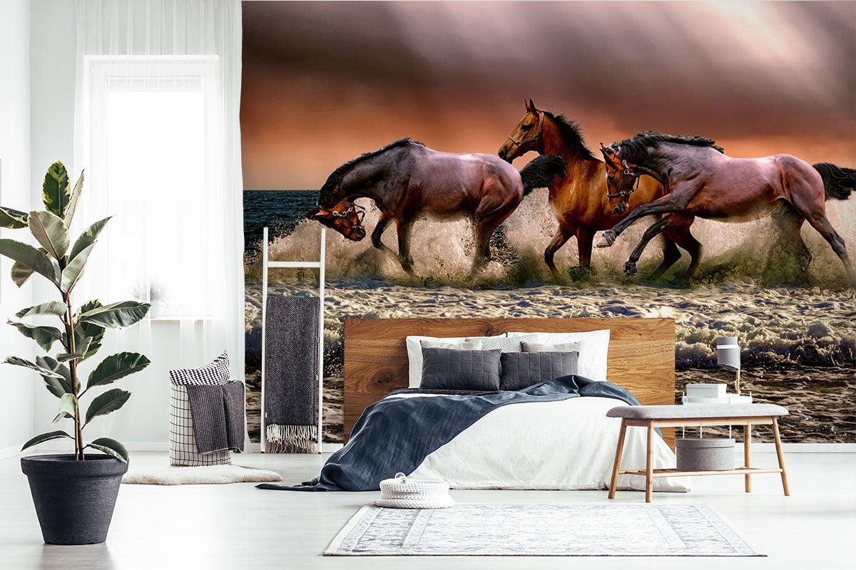 Horses Animals Brown Wallpaper Mural,Self-Adhesive Peel And Stick 3D Wall Decal,Removable Designer Wall Decor