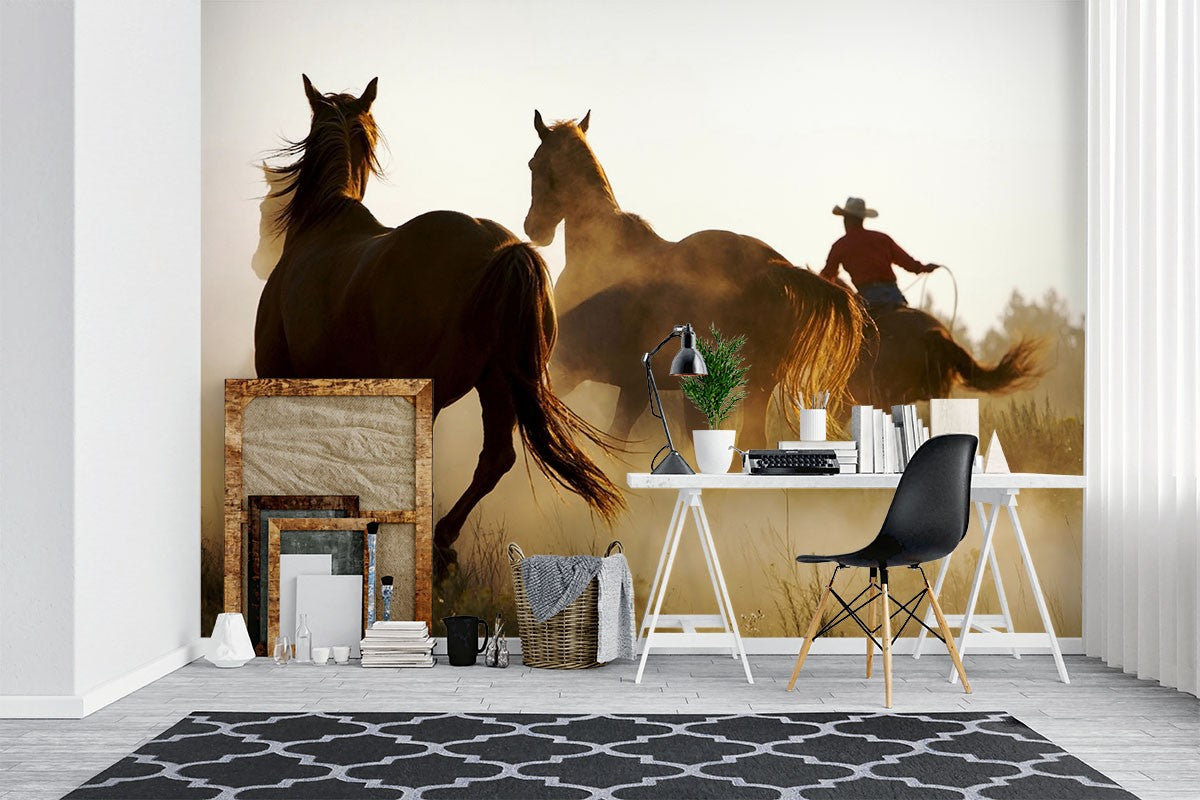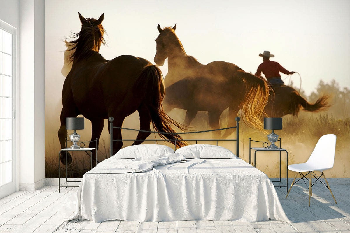 Horses Cowboy Animals Brown Wallpaper Mural,Self-Adhesive Peel And Stick 3D Wall Decor,Designer Removable Wall Decor