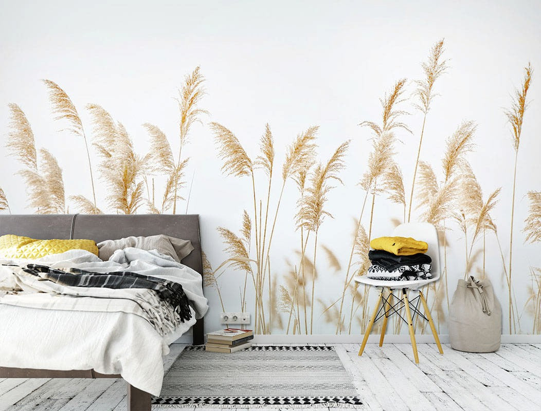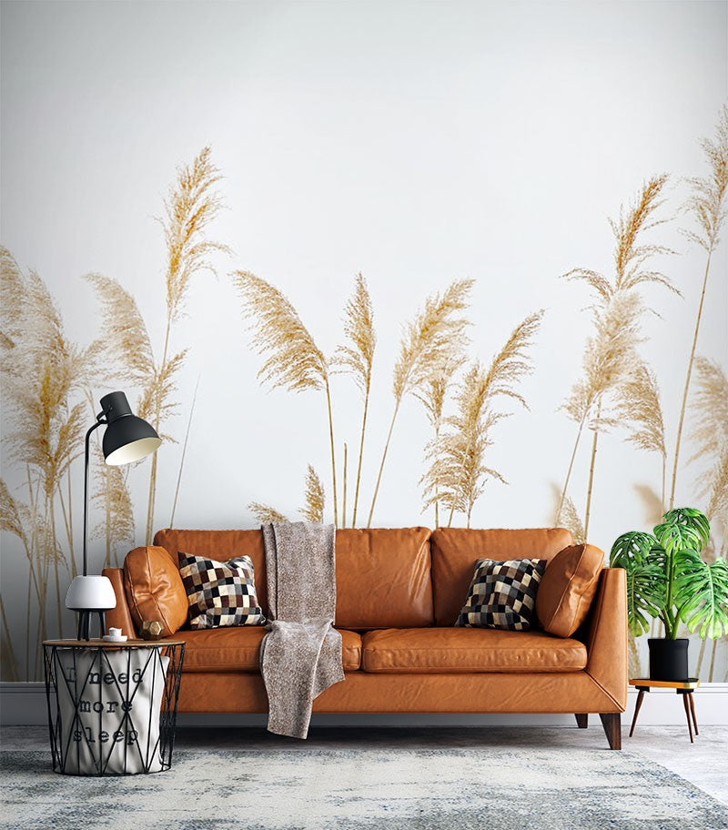 Horsetail Grass Floral Leaves Brown Wallpaper Mural,Self-Adhesive Peel And Stick 3D Wall Decal,Removable Designer Wall Decor