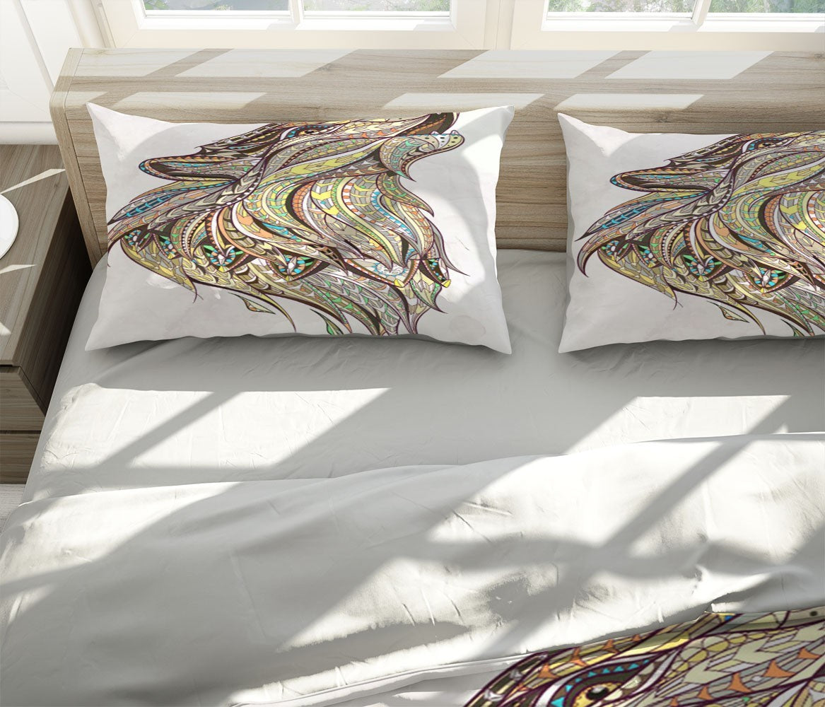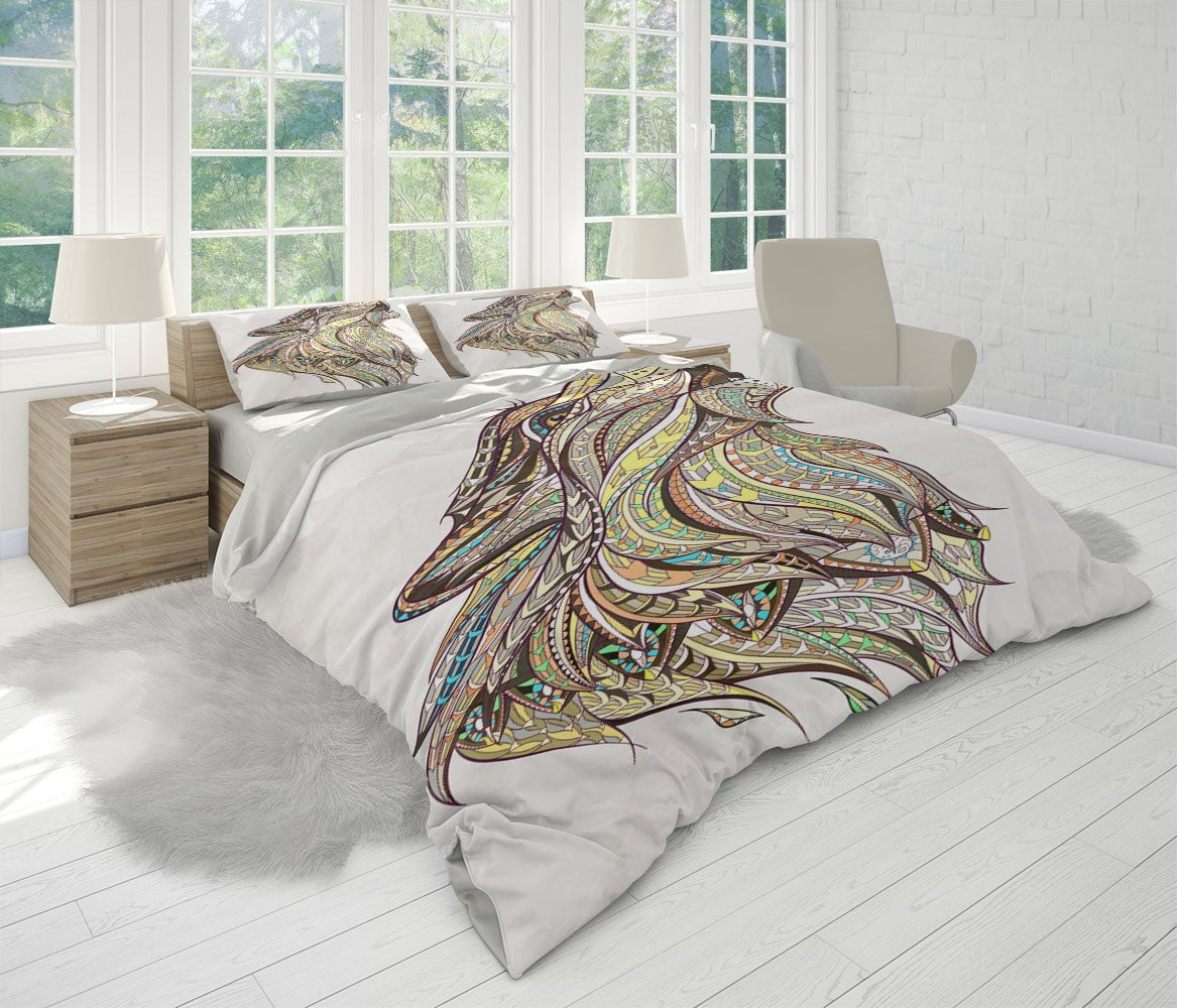 Howling Wolf Duvet Cover Set W Pillow Cover, Multicolour Art Contemporary 3D Quilt Cover, Single Double Queen King Size Doona Cover