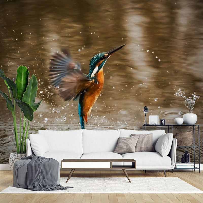 Hummingbird Animals Birds Brown Wallpaper Mural,Self-Adhesive Peel And Stick 3D Wall Art,Bedroom Removable Wall Decor