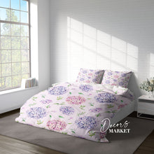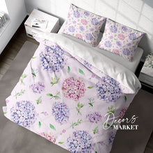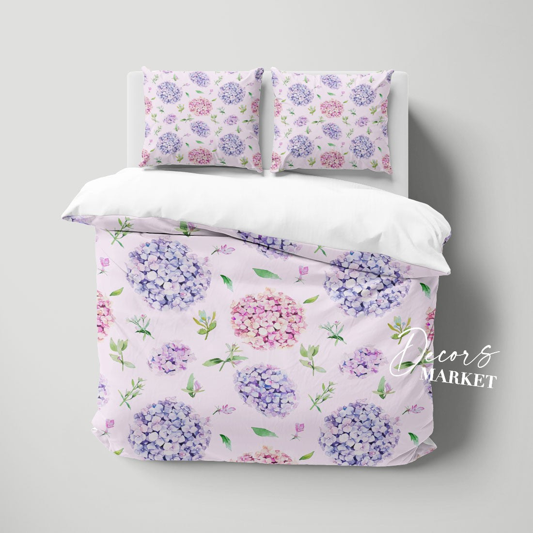 Hydrangea Bush Flowers Duvet Cover Set w Pillowcases, Purple Floral Flowers 3D Quilt Cover, 3pc Single Double Queen King Size Doona Cover