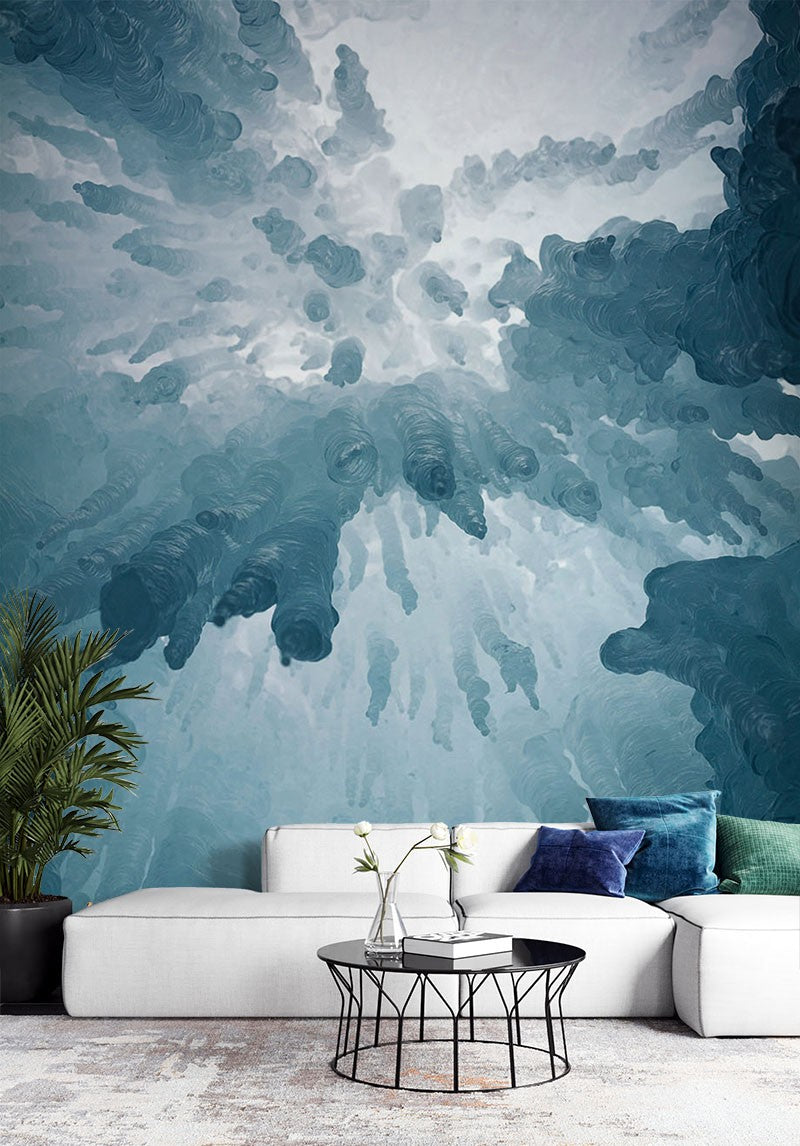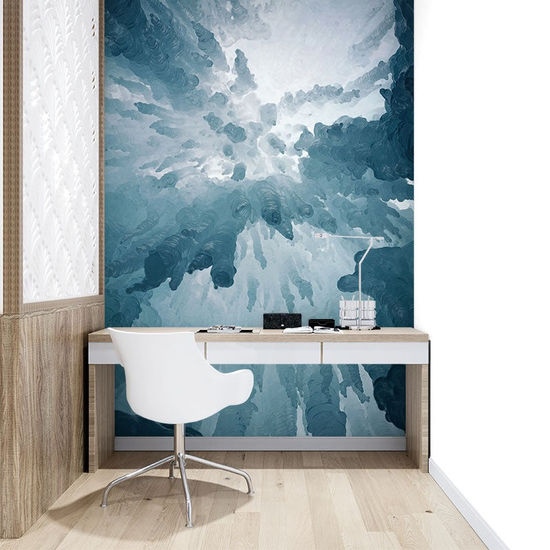 Ice Pillars Art Abstract Blue Wallpaper Mural,Self-Adhesive Peel And Stick 3D Wall Art,Removable Australian Company Wall Decor