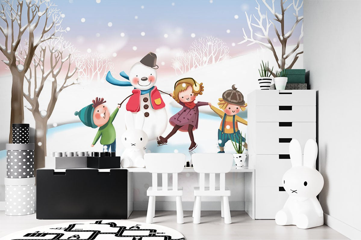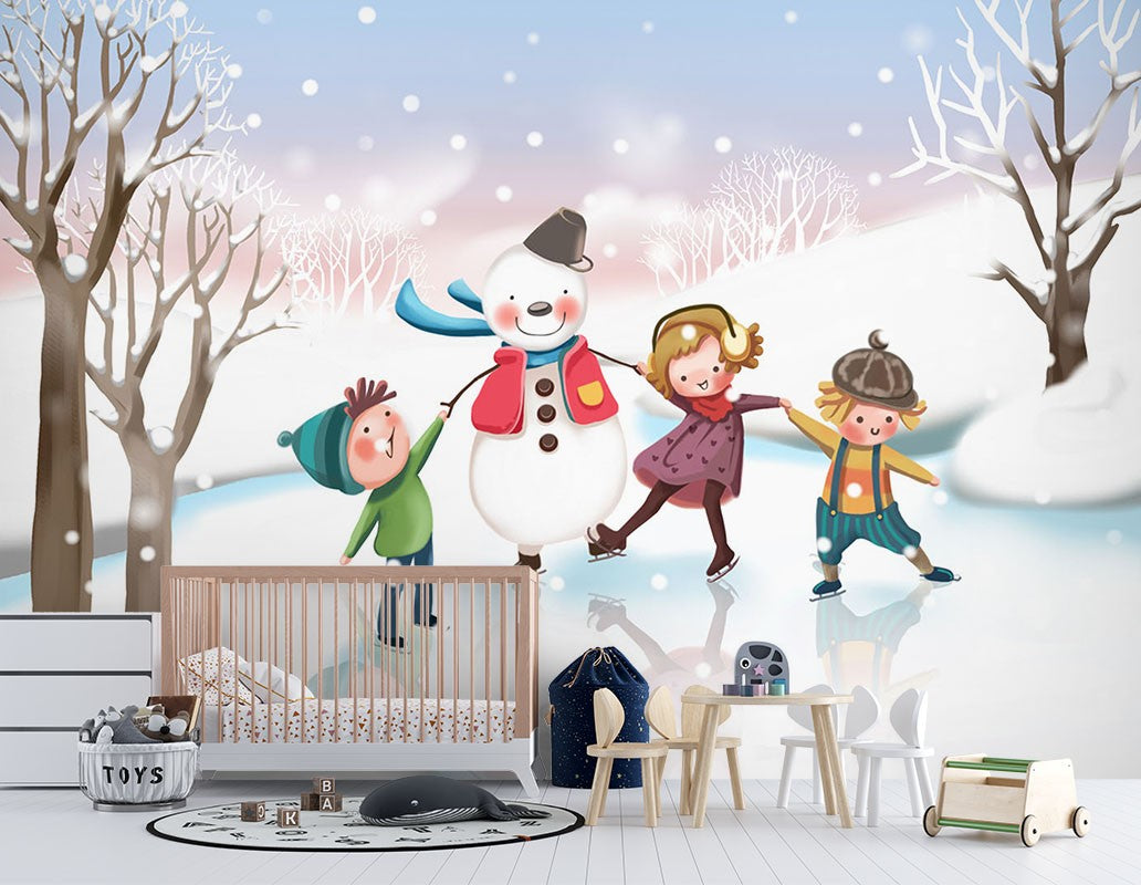 Ice Skating Kids Art For Kids Bright Wallpaper Mural,Self-Adhesive Peel And Stick 3D Wall Decal,Removable Australian Company Wall Decor