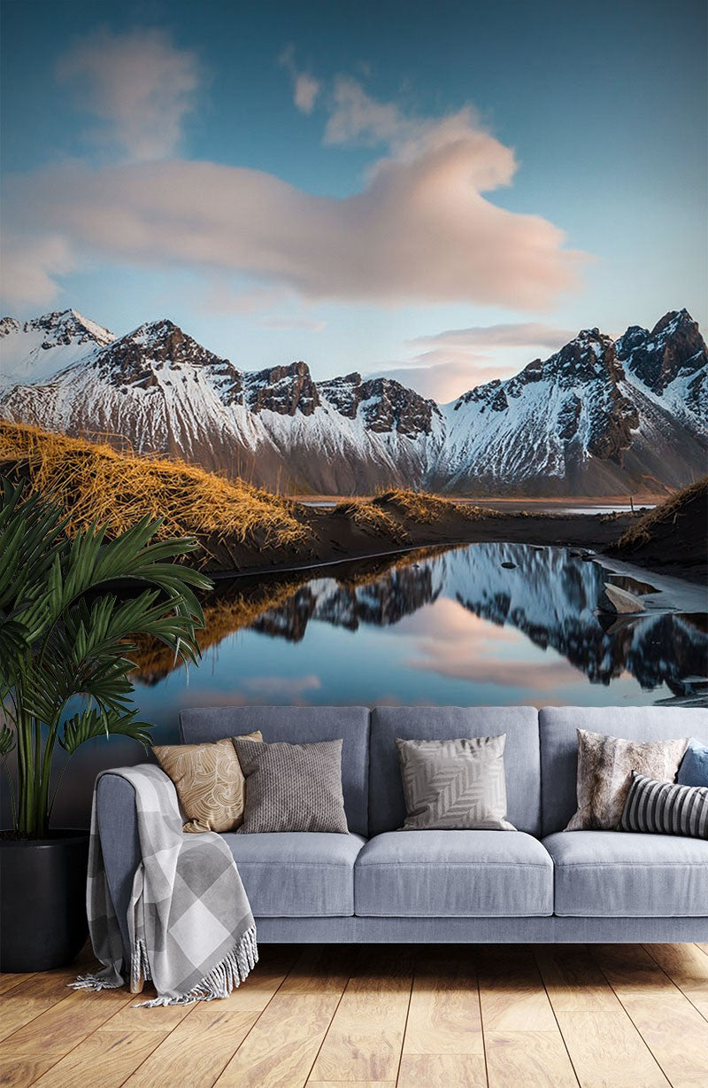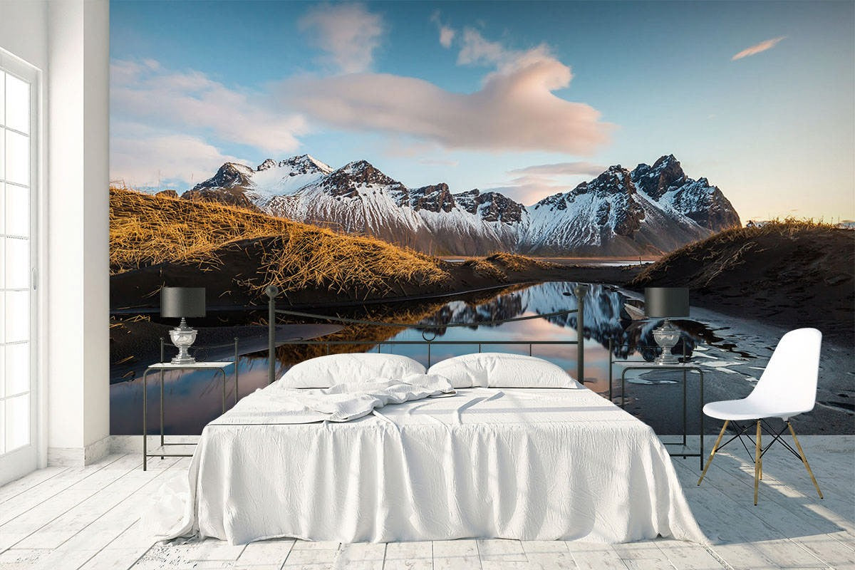Icey Mountain Nature Lakes Brown Wallpaper Mural,Self-Adhesive Peel And Stick 3D Wall Paper,Bedroom Designer Wall Decor