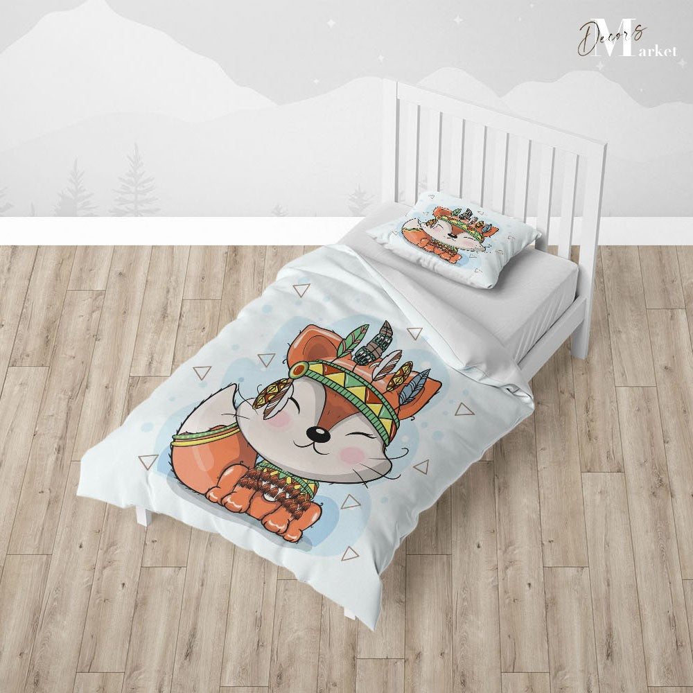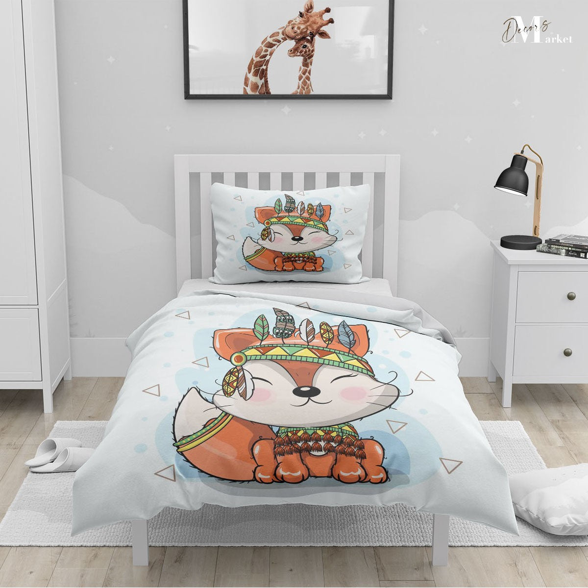 Indian Fox Smile Duvet Cover Set w Pillow Cover, Brown Kids Cartoon 3D Quilt Cover, Single Double Queen King Size Doona Cover