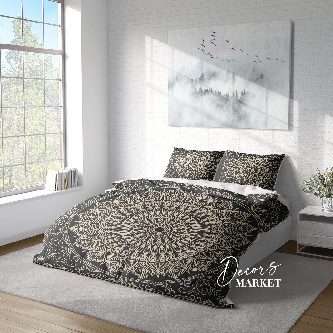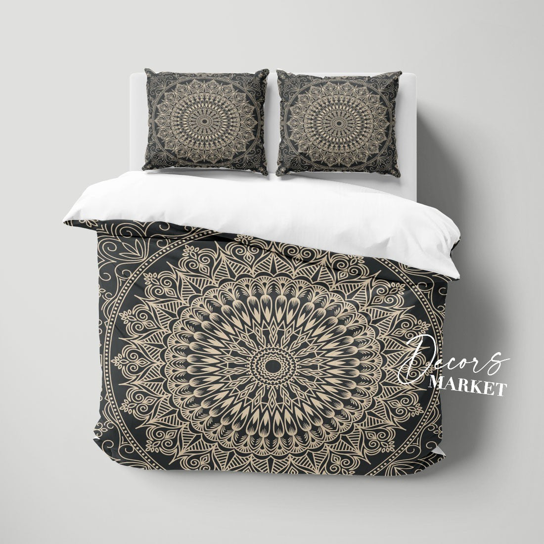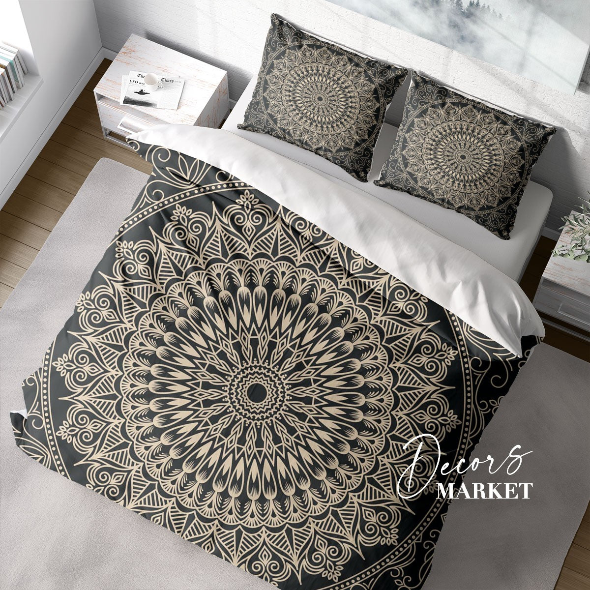Indian Mandala Duvet Cover Set w Pillowcases, Black and White Floral Patterns 3D Quilt Cover, 3pc Single Double Queen King Size Doona Cover