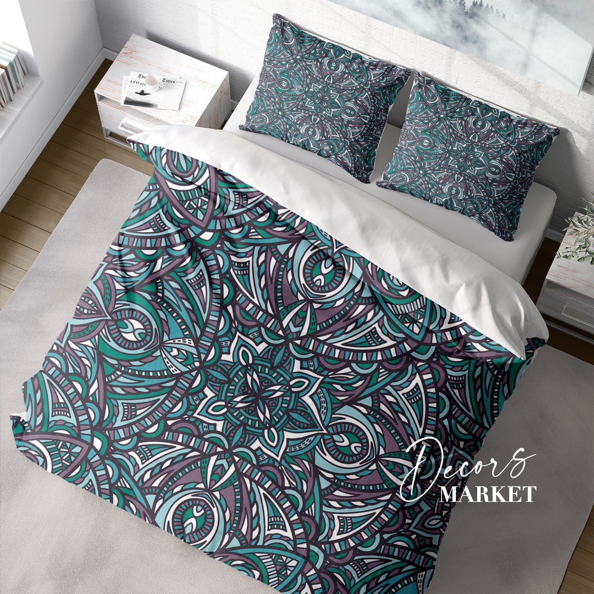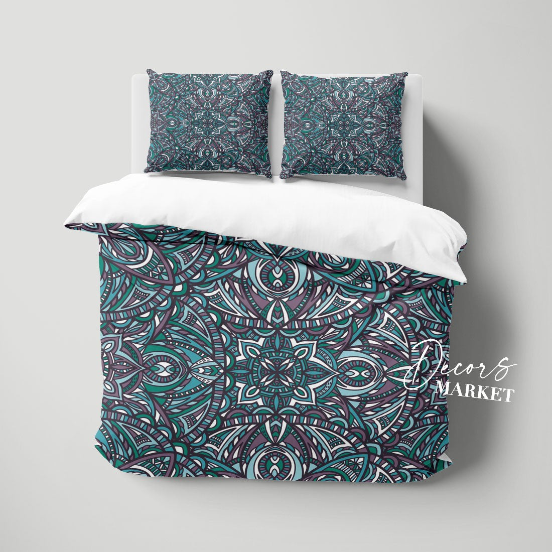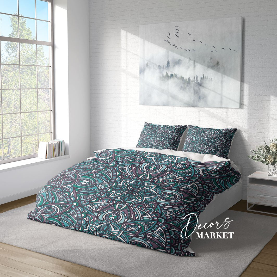 Indian Mandala Duvet Cover Set w Pillowcases, Blue Green Floral Patterns 3D Quilt Cover, 3pc Single Double Queen King Size Doona Cover