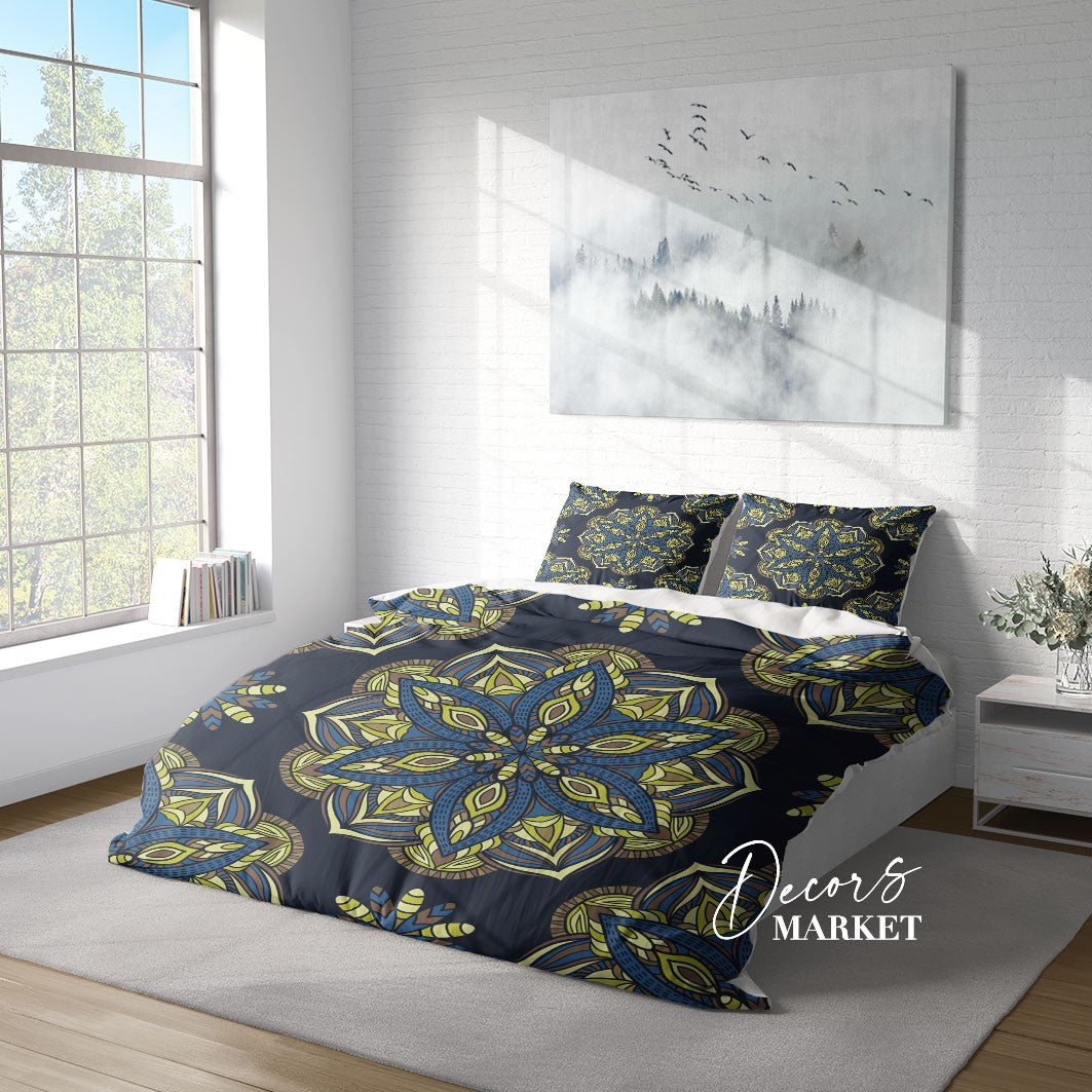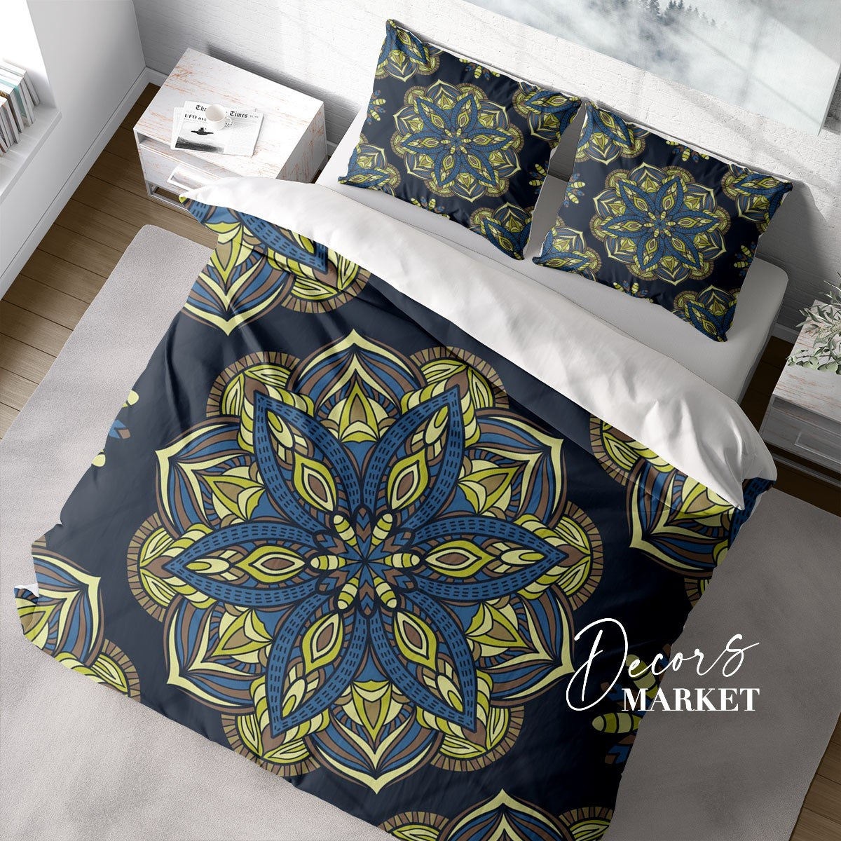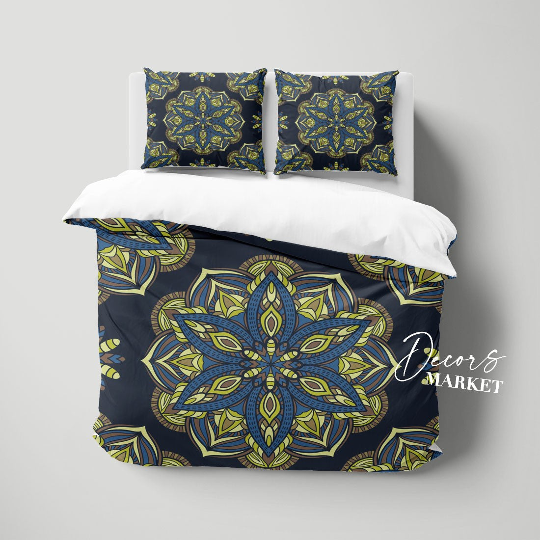 Indian Mandala Duvet Cover Set w Pillowcases, Blue Floral Patterns 3D Quilt Cover, 3pc Single Double Queen King Size Doona Cover
