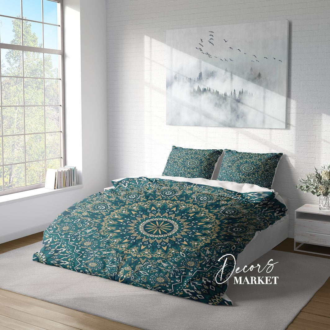 Indian Mandala Duvet Cover Set w Pillowcases, Blue Floral Patterns 3D Quilt Cover, 3pc Single Double Queen King Size Doona Cover