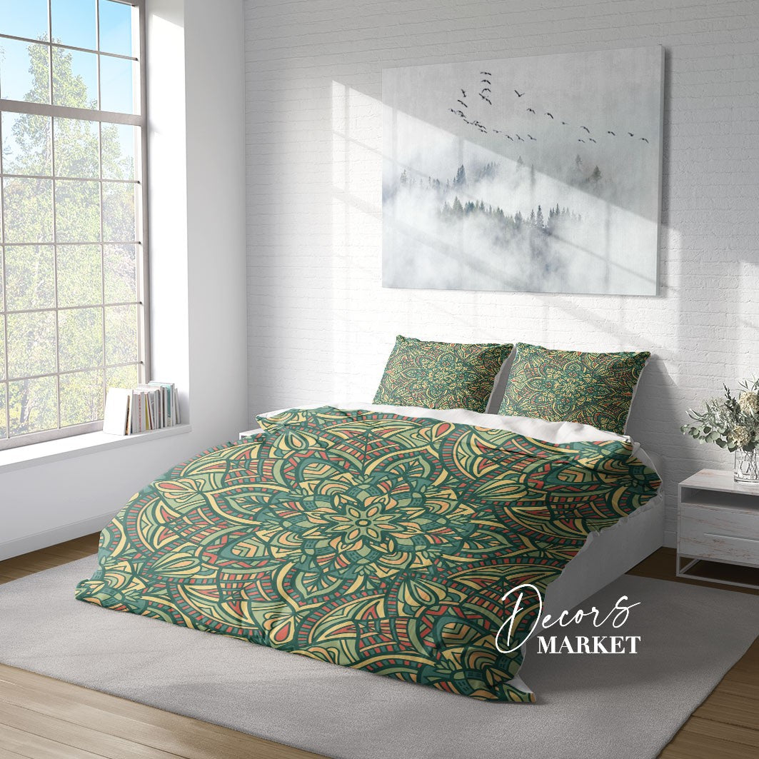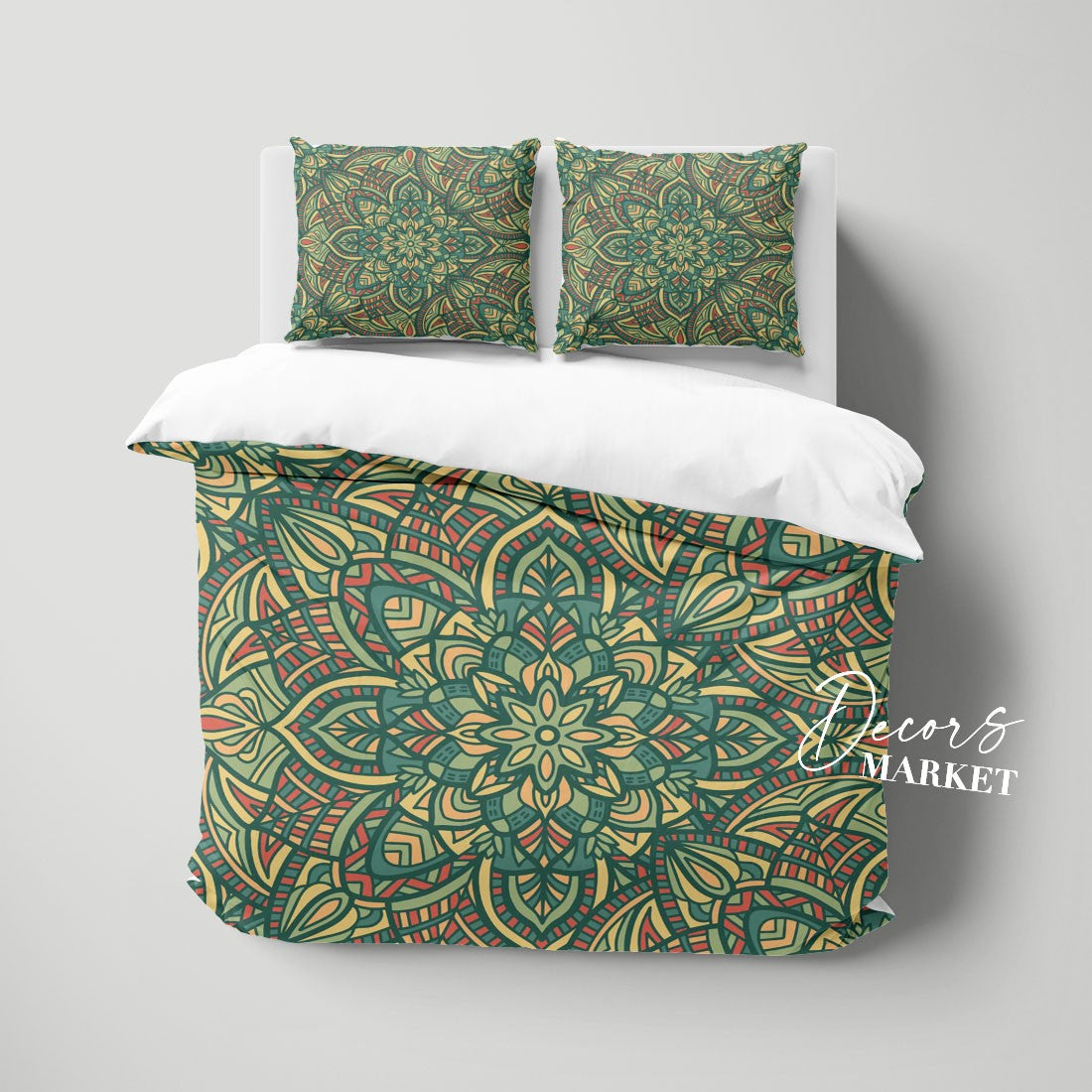 Indian Mandala Duvet Cover Set w Pillowcases, Green Floral Patterns 3D Quilt Cover, 3pc Single Double Queen King Size Doona Cover