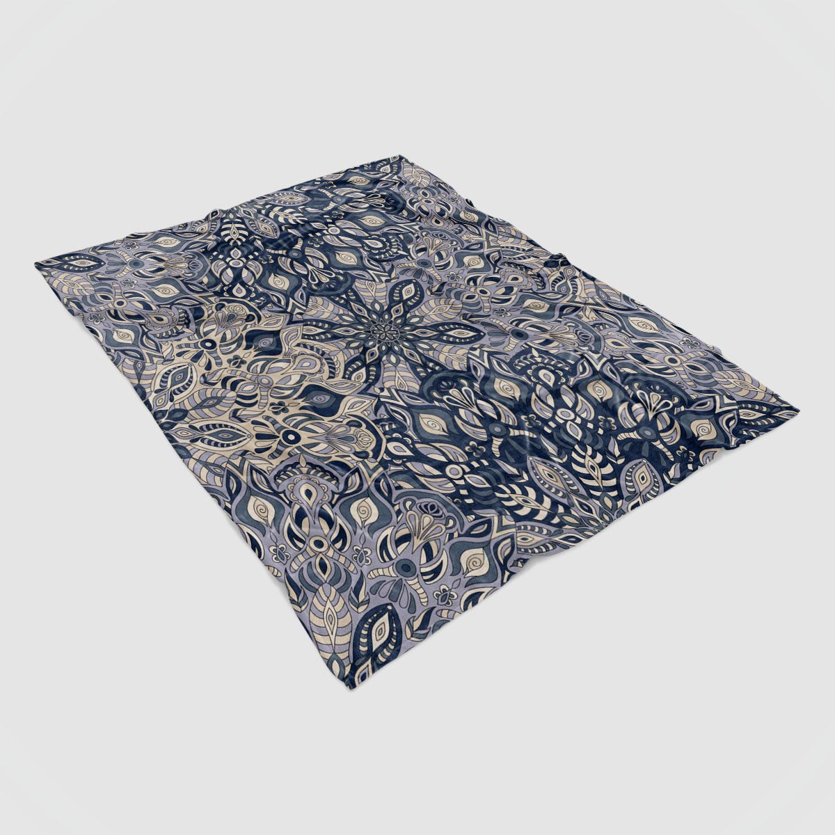 Indian Mandala Floral Patterns Purple Personalized Throw Blanket Custom Fleece Sherpa Throw
