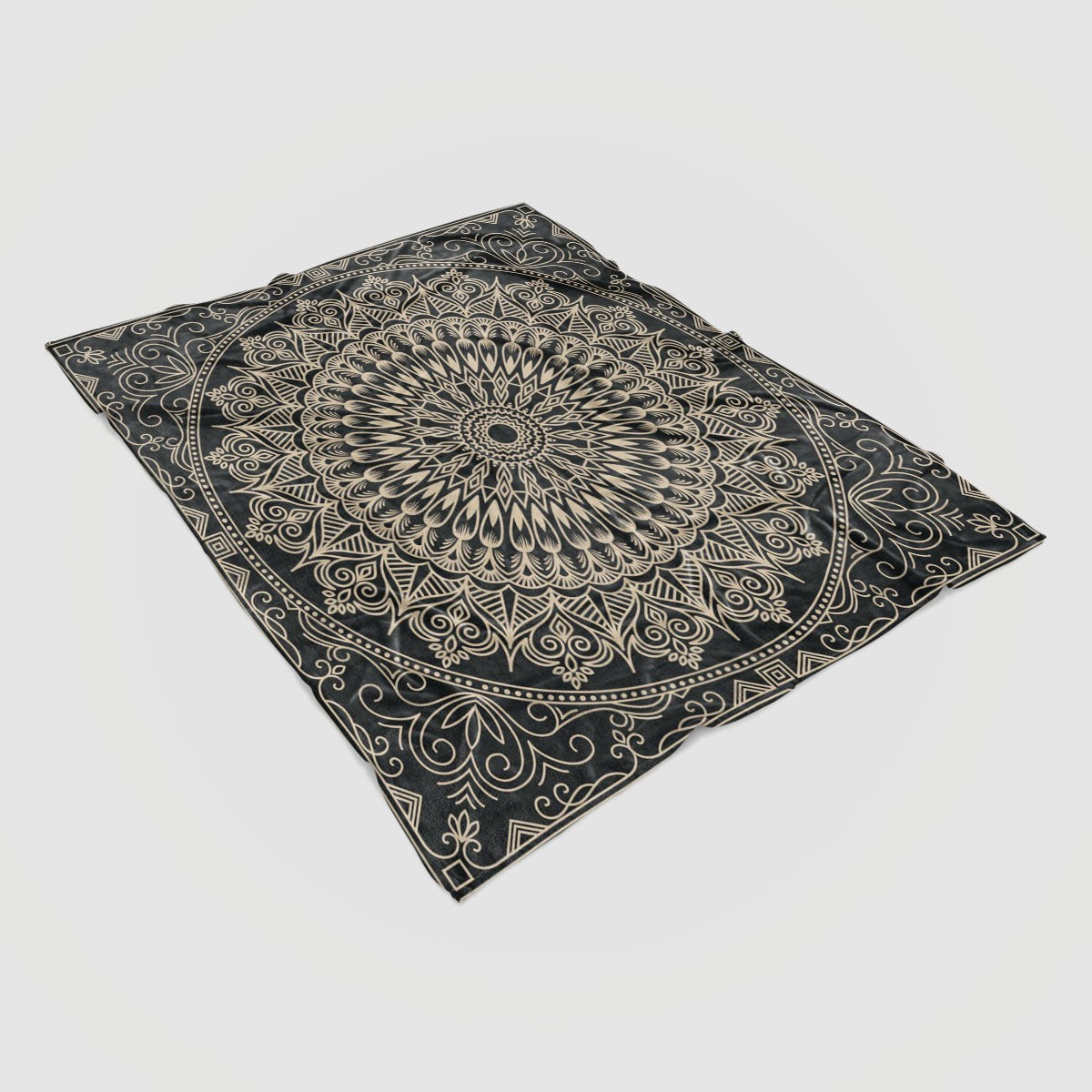Indian Mandala Floral Patterns Black&White Personalized Throw Blanket Custom Fleece Sherpa Throw