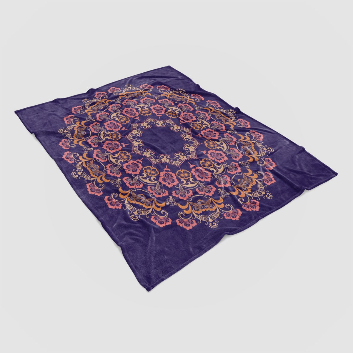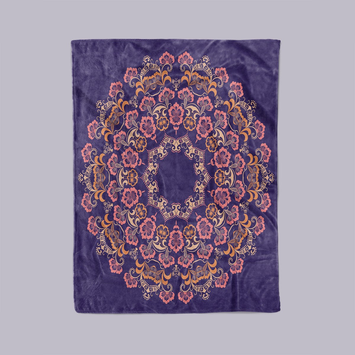 Indian Mandala Floral Patterns Purple Personalized Throw Blanket Custom Fleece Sherpa Throw
