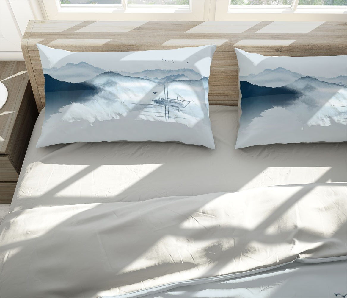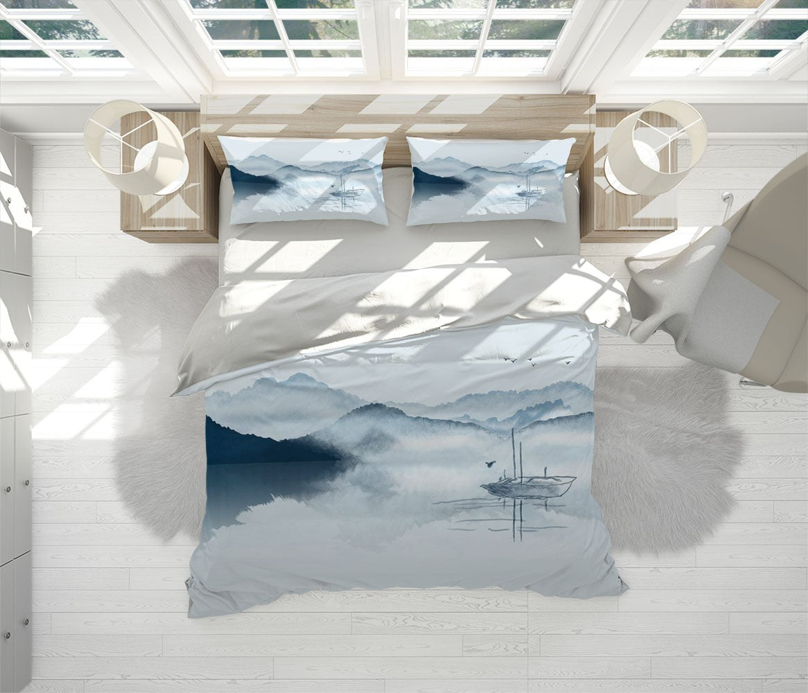 Ink Misty Duvet Cover Set W Pillow Cover, Gray Art Chinoiserie 3D Quilt Cover, Single Double Queen King Size Doona Cover