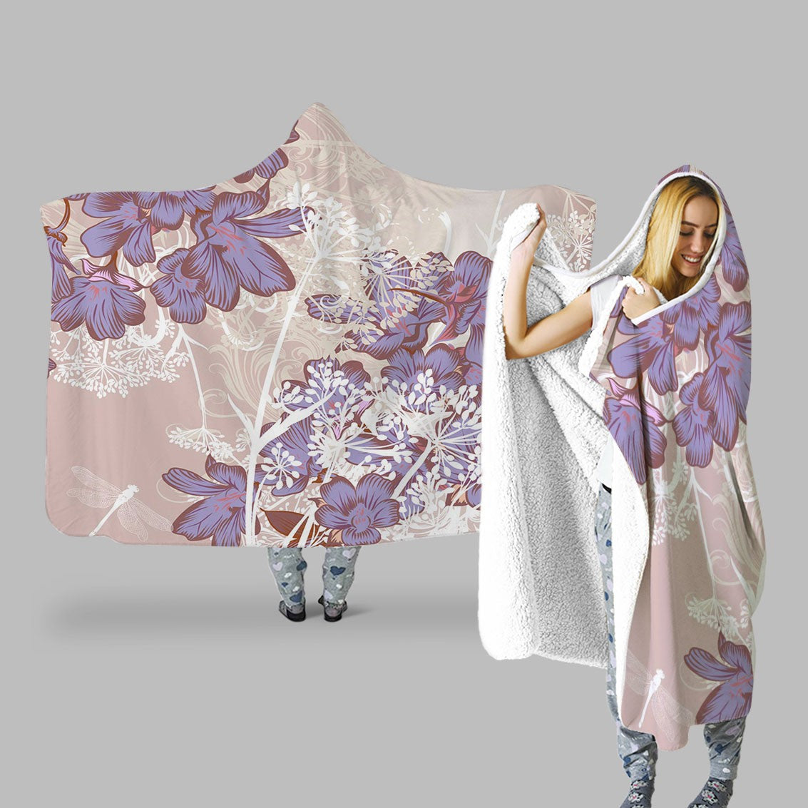 Irises Rose Garden Floral Flowers Purple Personalized Hooded Throw Blanket Fleece Hoodie Cape