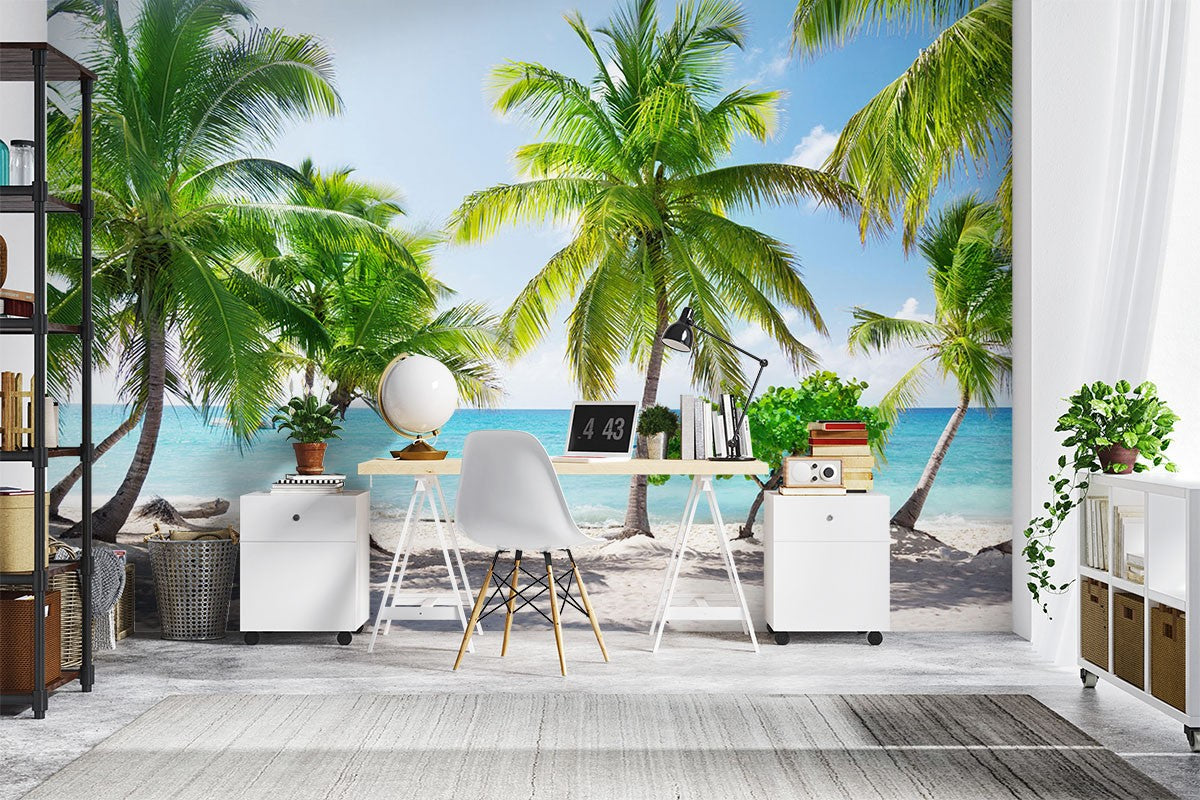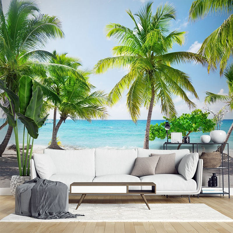 Island Beach Palm Tree Green Wallpaper Mural,Self-Adhesive Peel And Stick 3D Wall Mural,Australian Company Bedroom Wall Decor