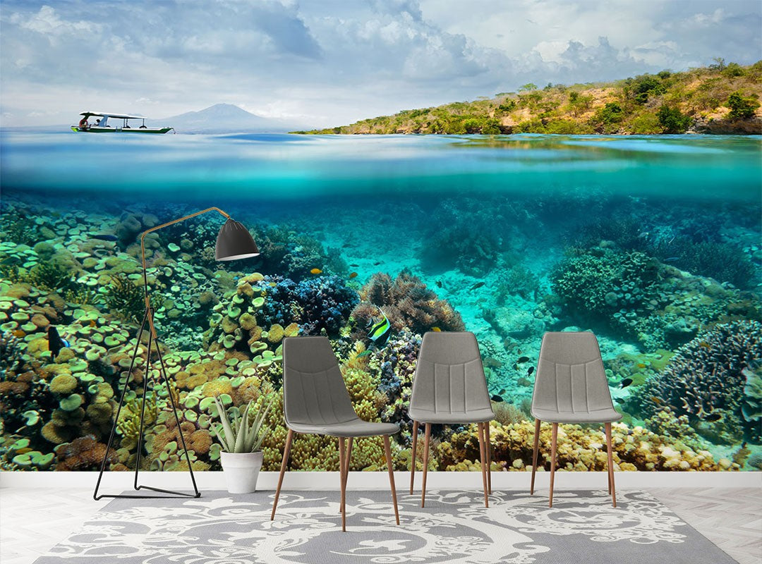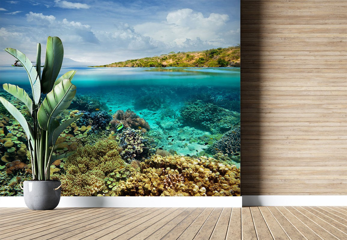 Island Coral Nature Underwater Blue Wallpaper Mural,Self-Adhesive Peel And Stick 3D Wall Art,Bedroom Australian Company Wall Decor