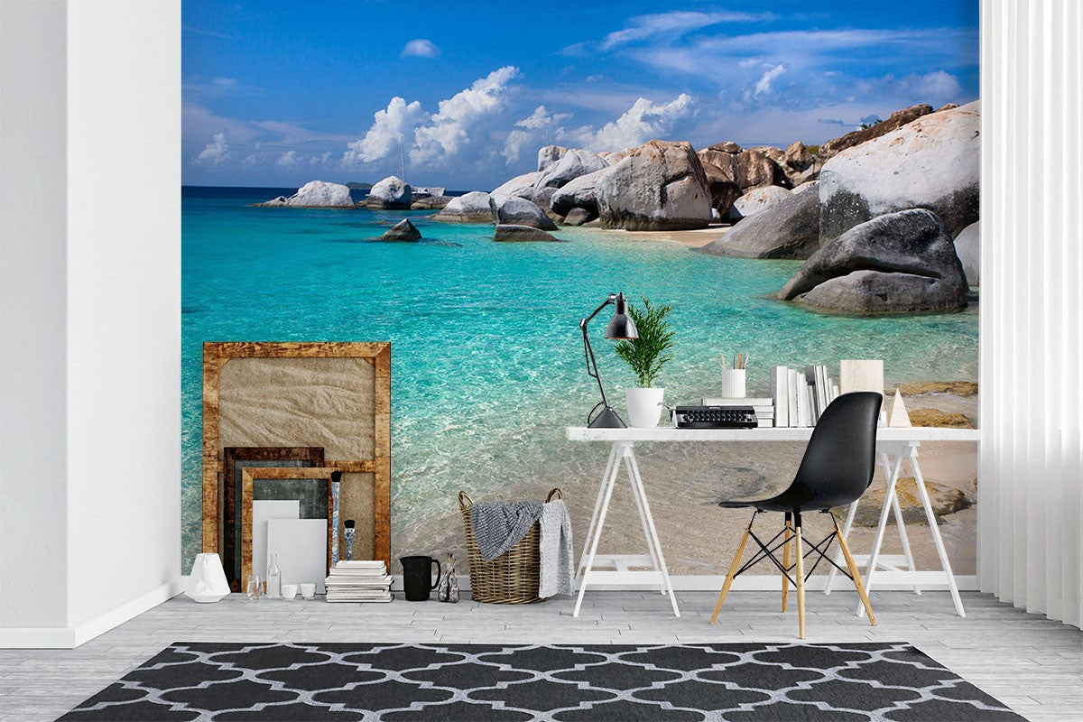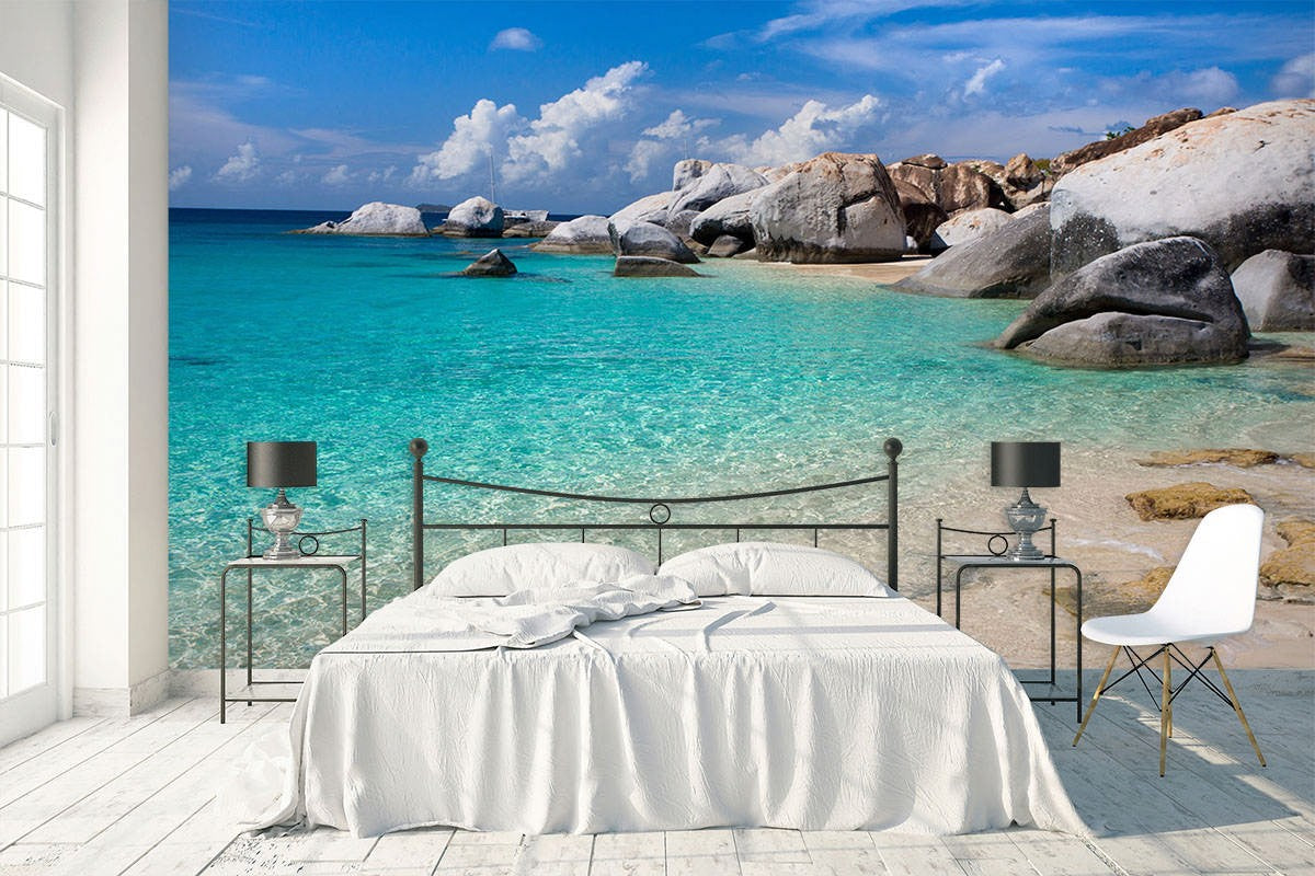 Island Rock Beach Blue Wallpaper Mural,Self-Adhesive Peel And Stick 3D Wall Art,Removable Australian Company Wall Decor