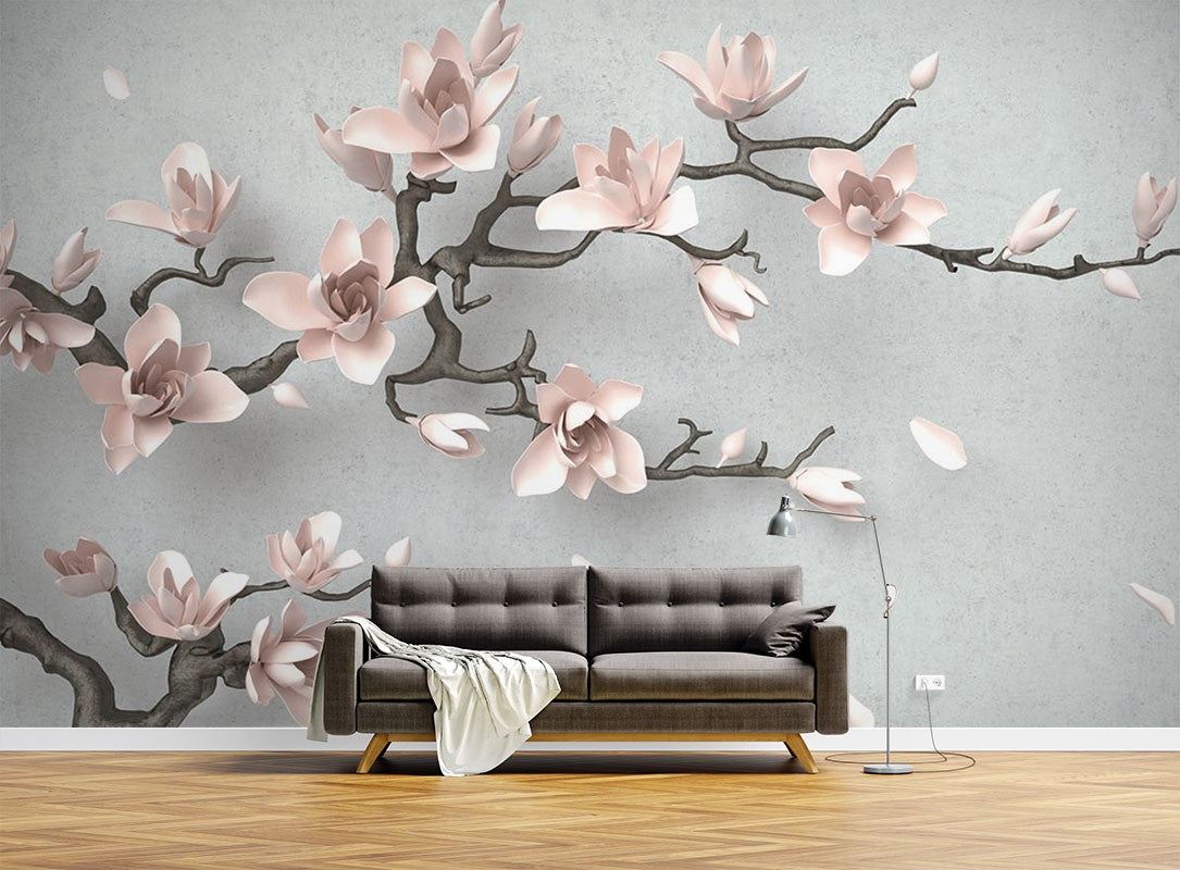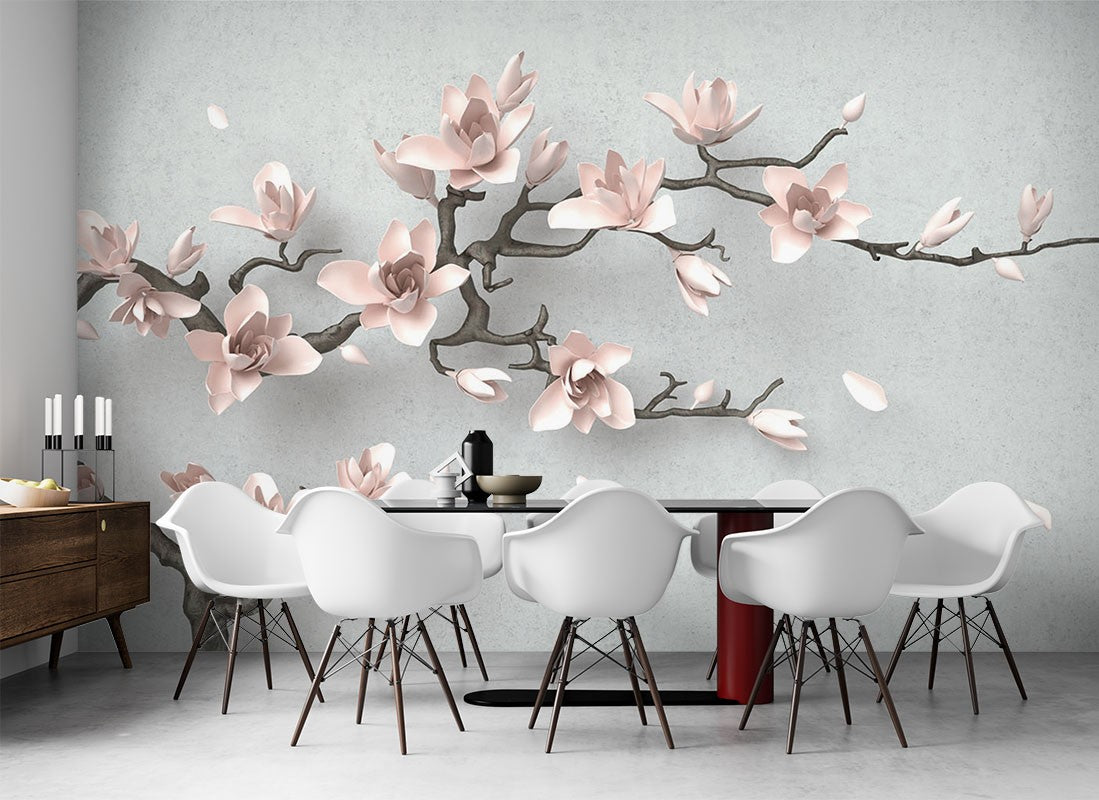 Japanese Cherry Floral Dutch Flowers Pink Wallpaper Mural,Self-Adhesive Peel And Stick 3D Wall Paper,Bedroom Removable Wall Decor