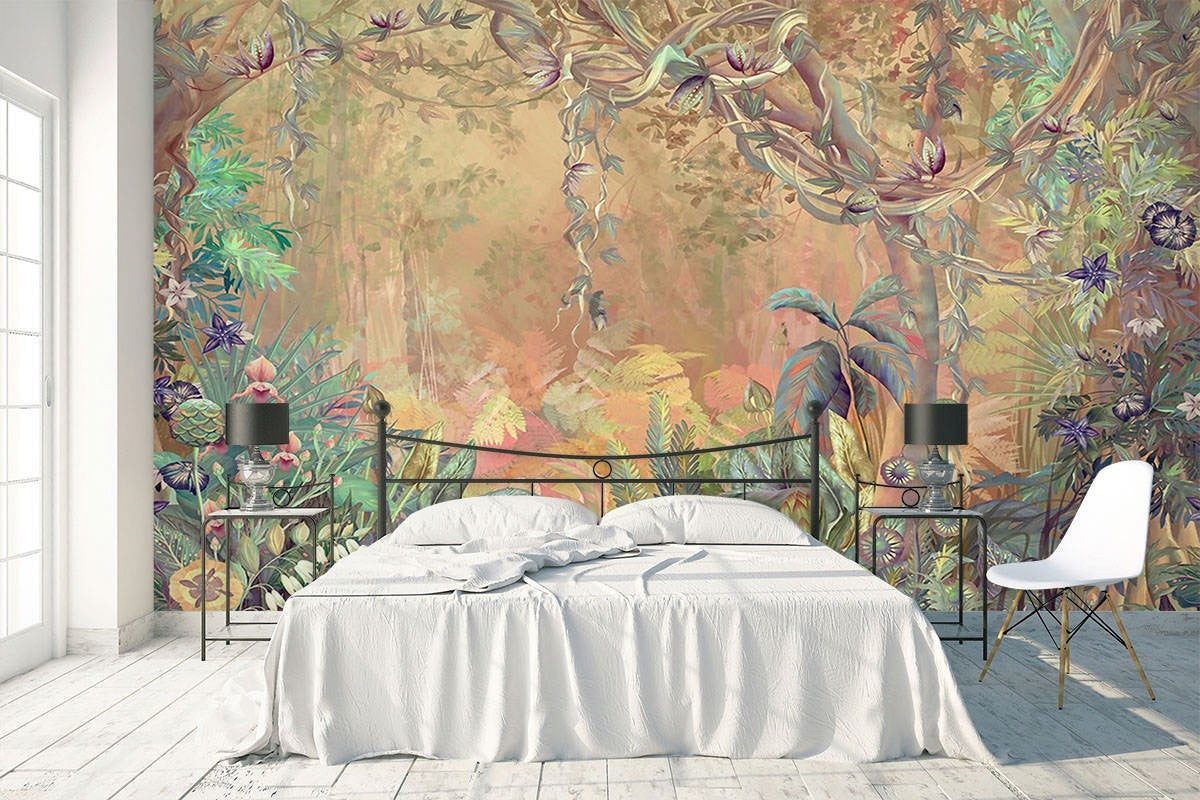 Jungle Forest Brown Wallpaper Mural,Self-Adhesive Peel And Stick 3D Wall Art,Australian Company Removable Wall Decor