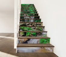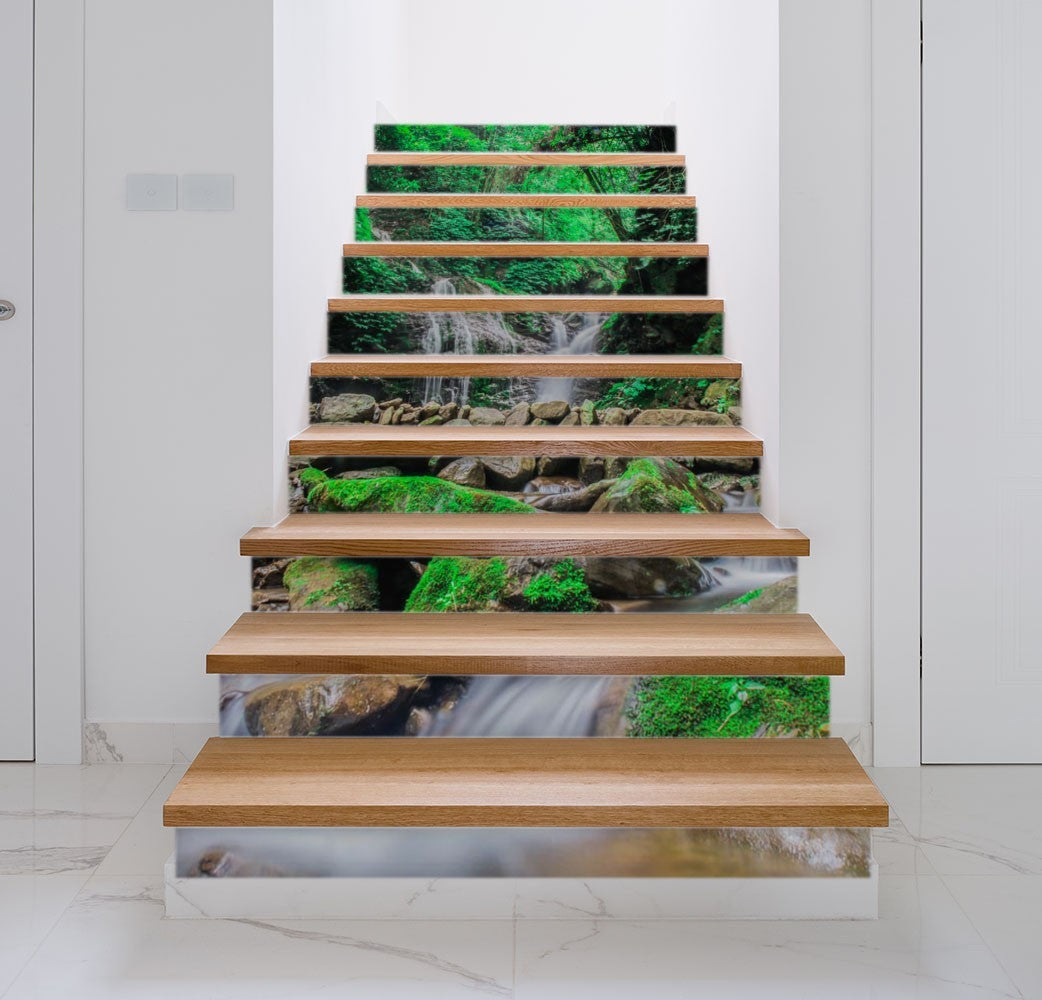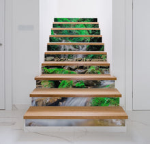 Jungle Moss Nature Waterfall Green Stair Riser Decals, Waterproof Removable Staircase Decals, Vinyl Peel And Stick Stairs Decal Stickers