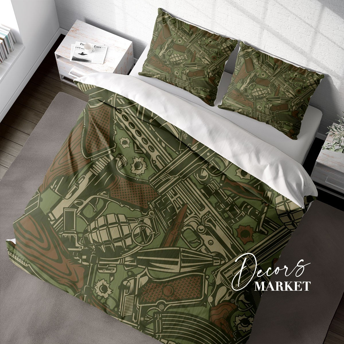 Knife Grenade Military Army Commando Special Forces Duvet Cover Set w Pillowcases, Green Art Fantasy 3D Quilt Cover, 3pc Single Double Queen King Size Doona Cover