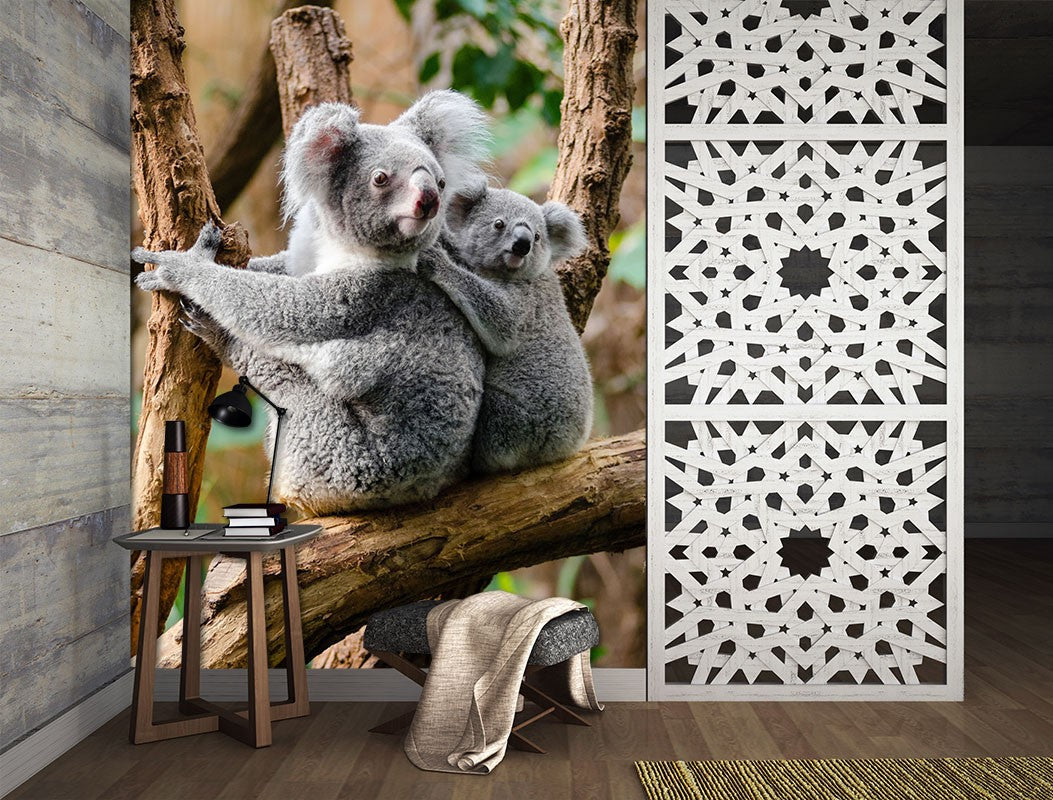 Koala Animals Wild Animals Gray Wallpaper Mural,Self-Adhesive Peel And Stick 3D Wall Paper,Bedroom Removable Wall Decor