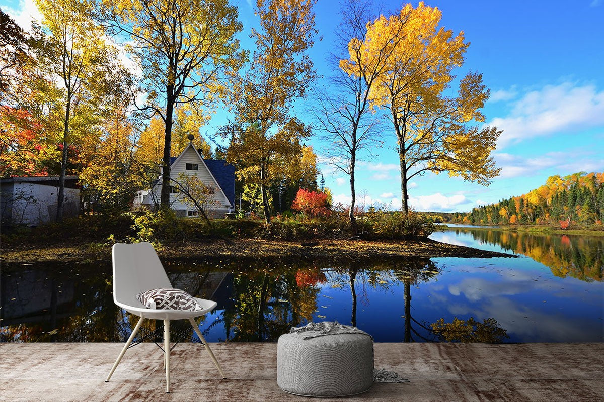 Lake House Nature Rivers Lakes Blue Wallpaper Mural,Self-Adhesive Peel And Stick 3D Wall Decal,Bedroom Australian Company Wall Decor