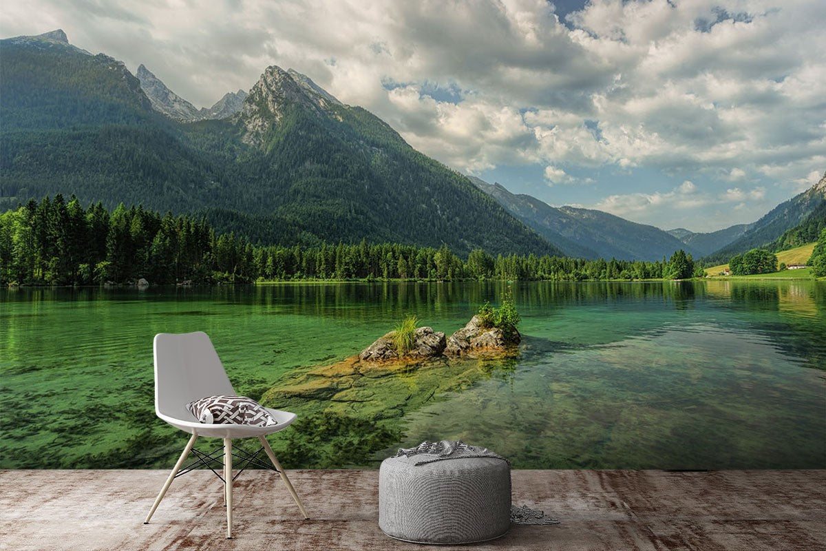 Lake Mountain Nature Rivers Green Wallpaper Mural,Self-Adhesive Peel And Stick 3D Wall Decal,Removable Designer Wall Decor