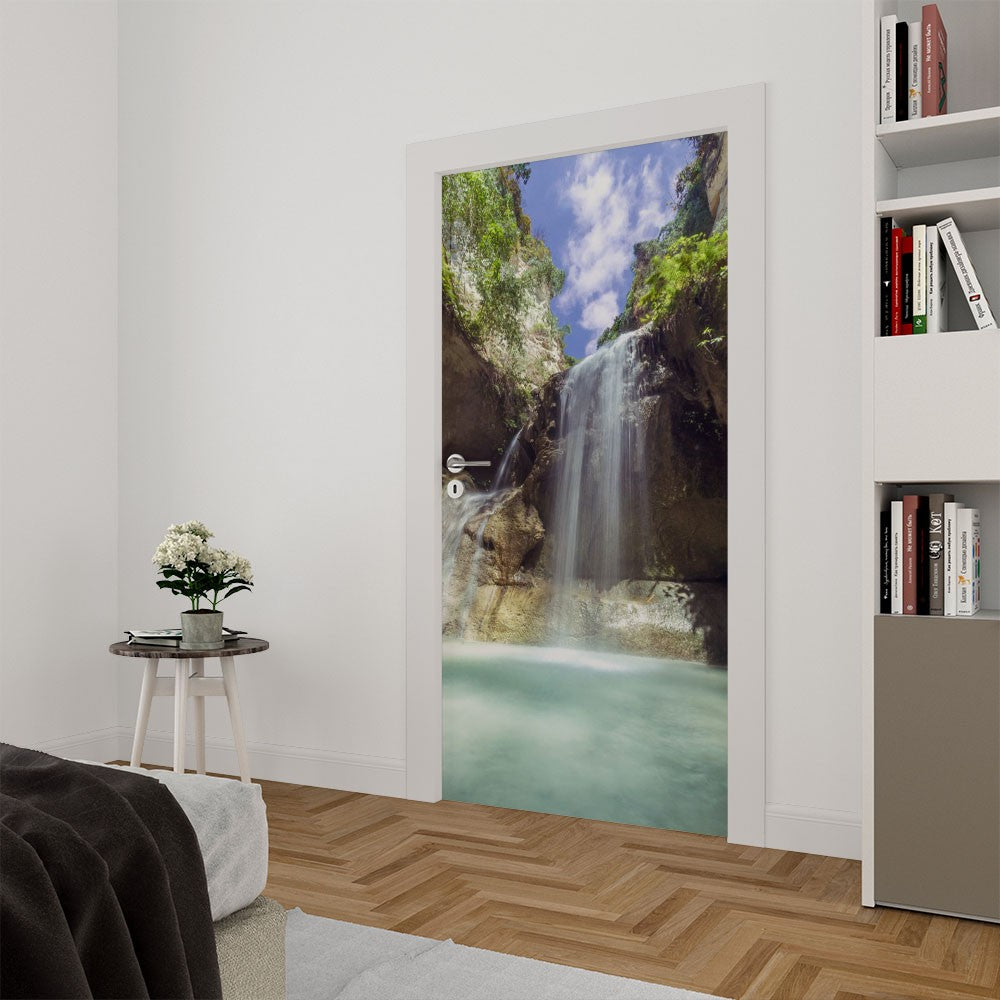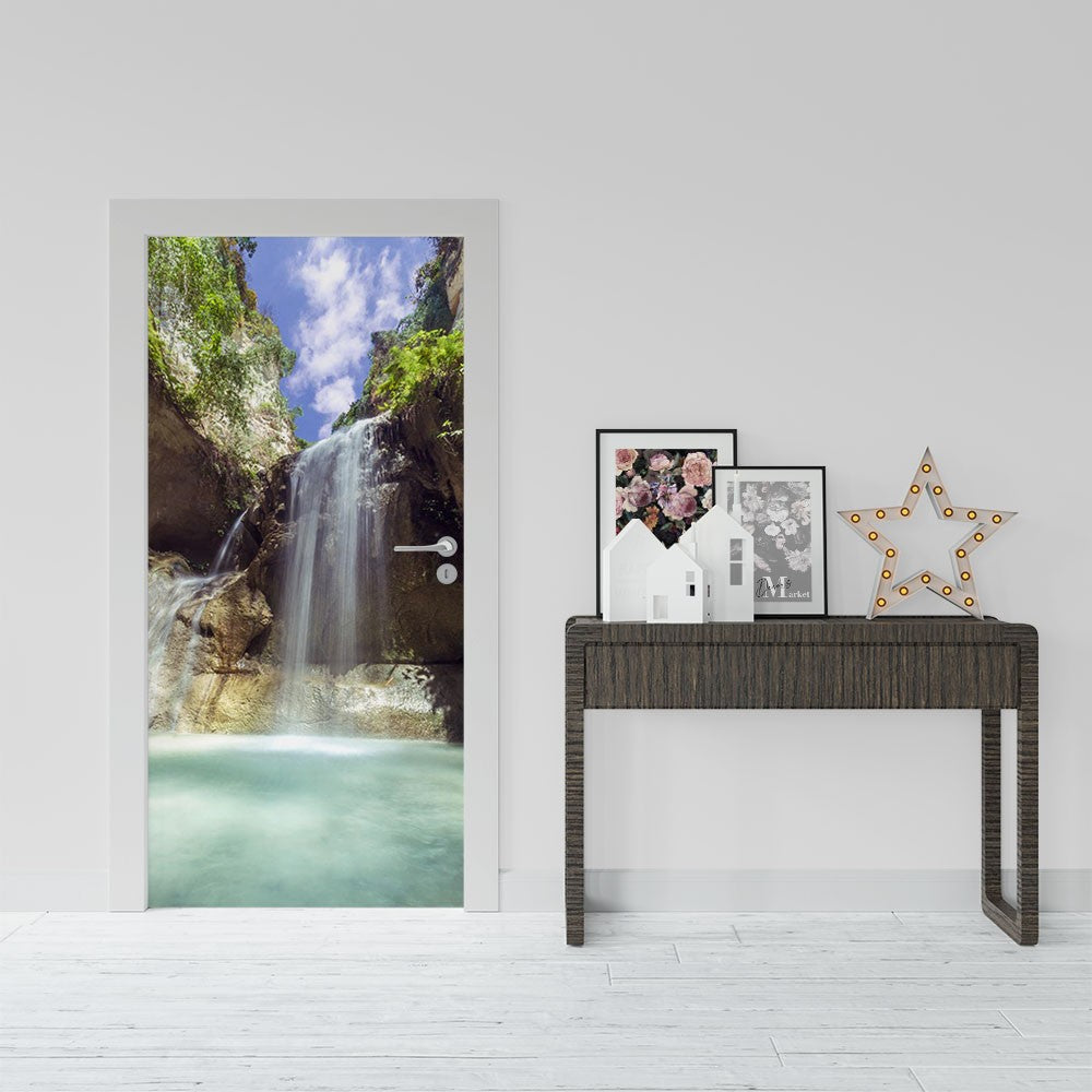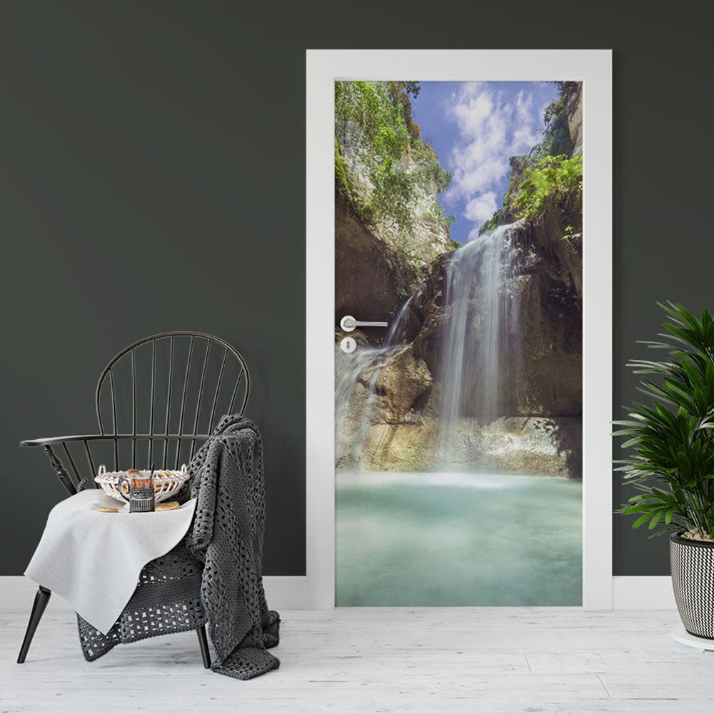 Lake Rock Nature Waterfall Door Wrap, Customized Mural For Door, Door Mural Sticker, Peel And Stick Door Cover, Removable Door Decal