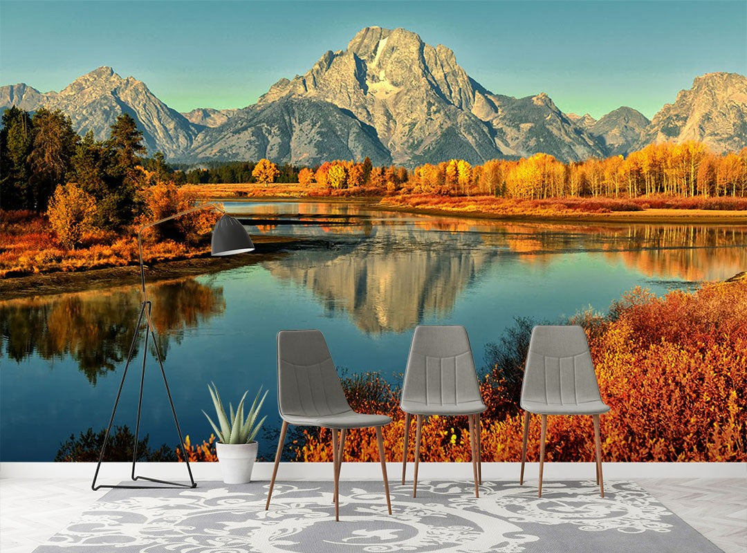 Lake Sky Nature Rivers Lakes Orange Wallpaper Mural,Self-Adhesive Peel And Stick 3D Wall Art,Australian Company Bedroom Wall Decor