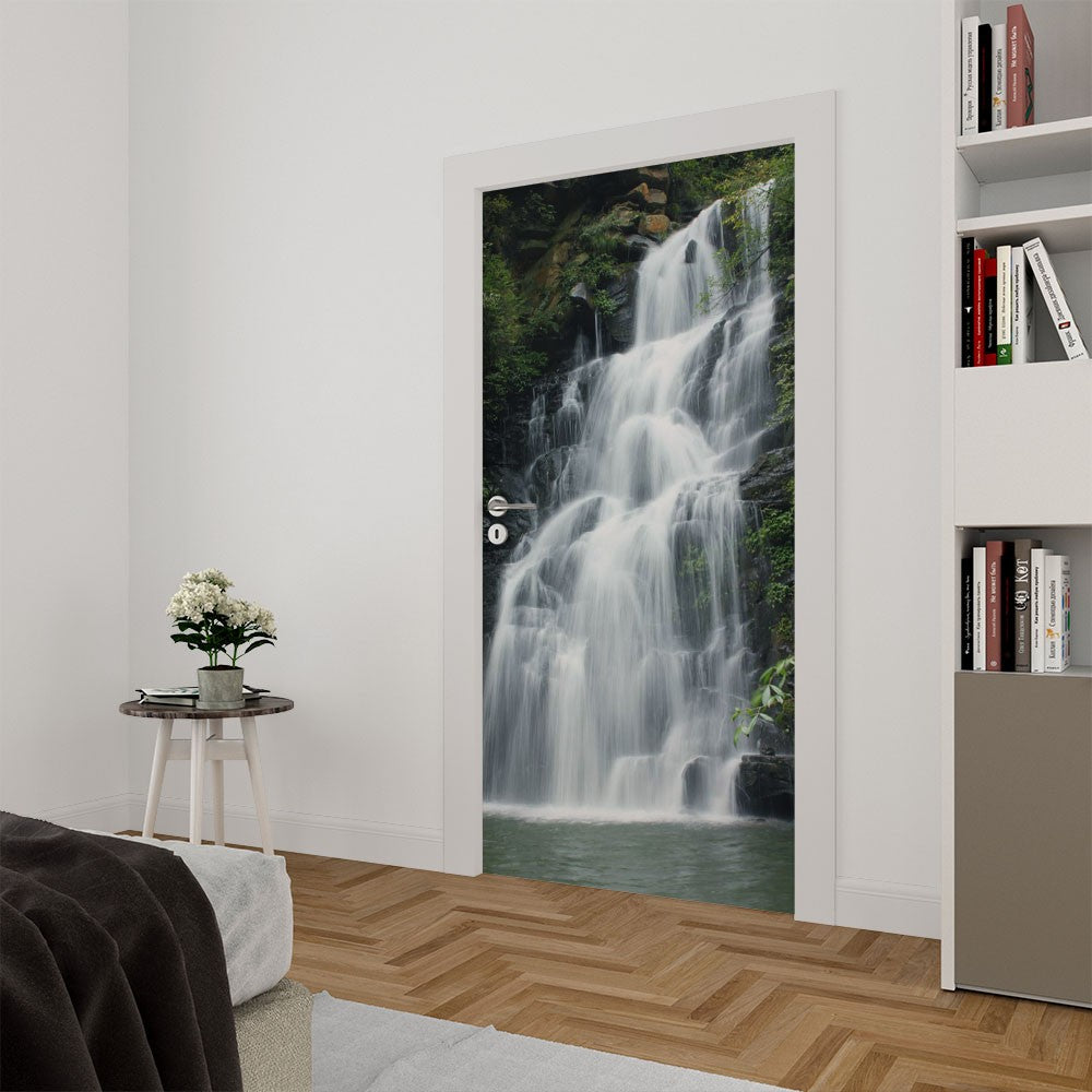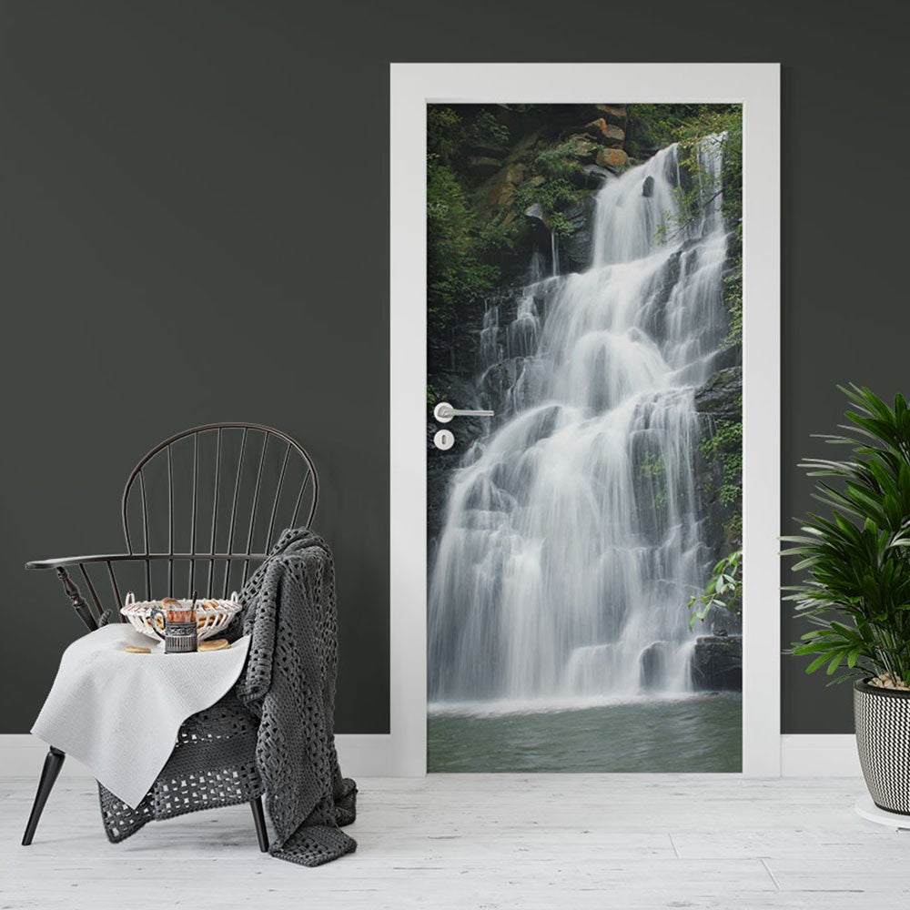 Lake Tree Nature Waterfall Door Wrap, Customized Mural For Door, Door Mural Sticker, Peel And Stick Door Cover, Removable Door Decal