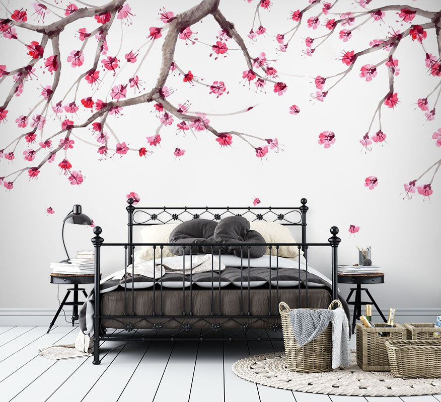 Lamei Art Chinoiserie Red Wallpaper Mural,Self-Adhesive Peel And Stick 3D Wall Decal,Designer Bedroom Wall Decor
