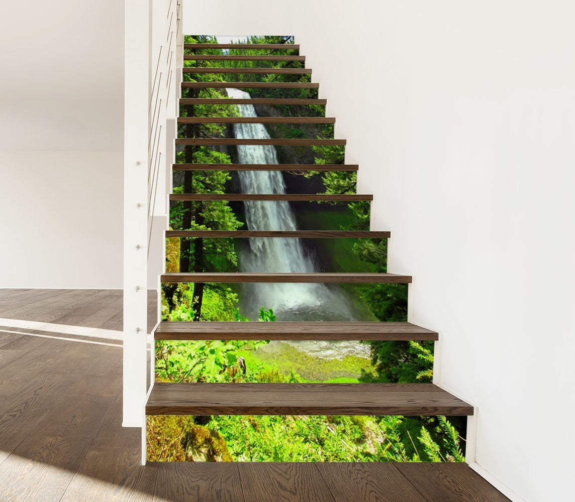 Landscape Jungle Nature Waterfall Stair Riser Decals, Waterproof Removable Staircase Decals, Vinyl Peel And Stick Stairs Decal Stickers