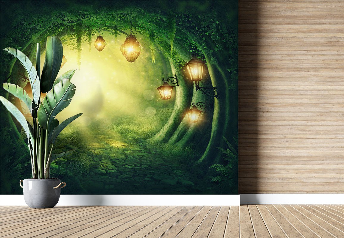 Lantern Pathway Nature Space Blue Wallpaper Mural,Self-Adhesive Peel And Stick 3D Wall Decal,Removable Bedroom Wall Decor