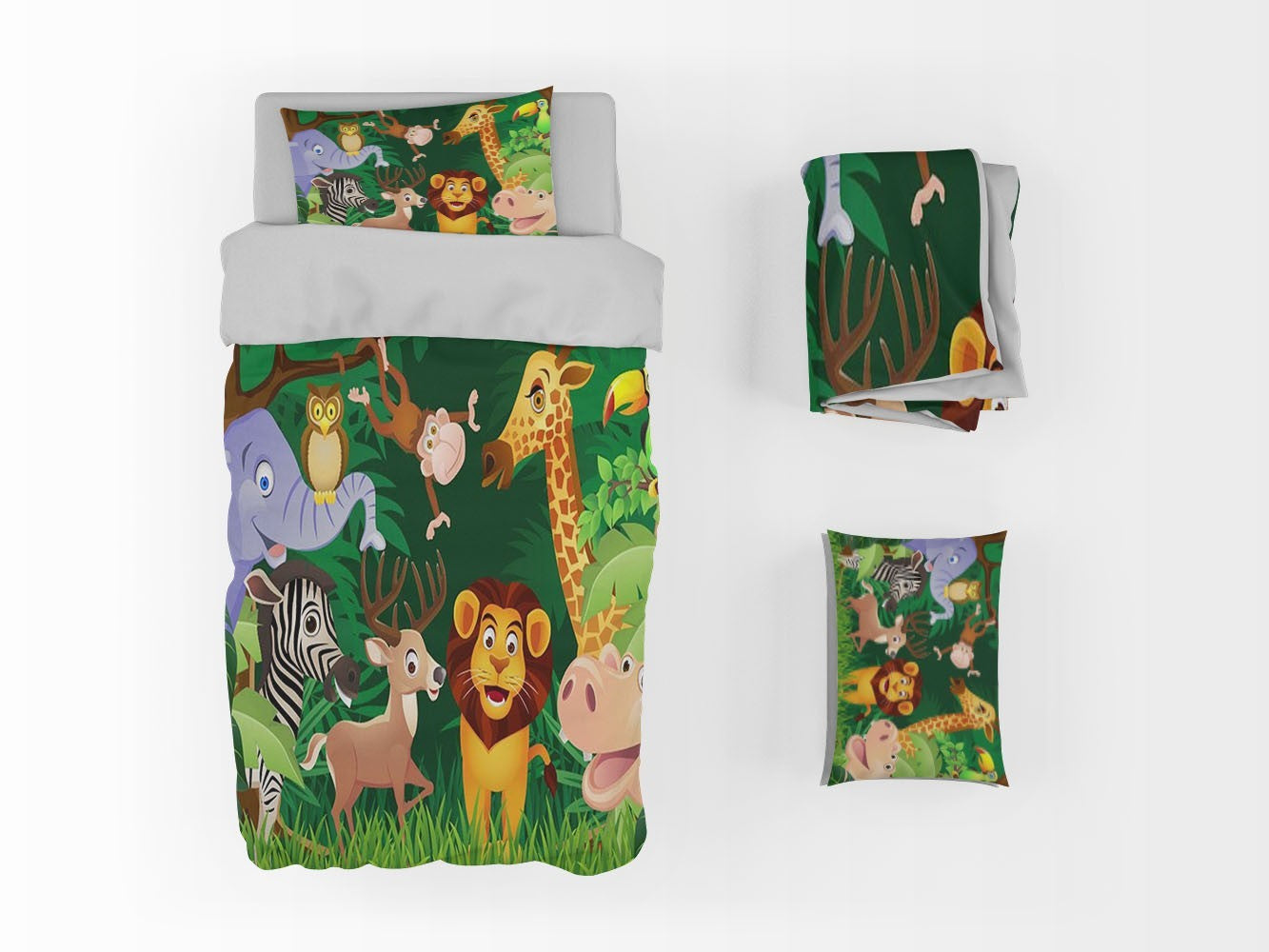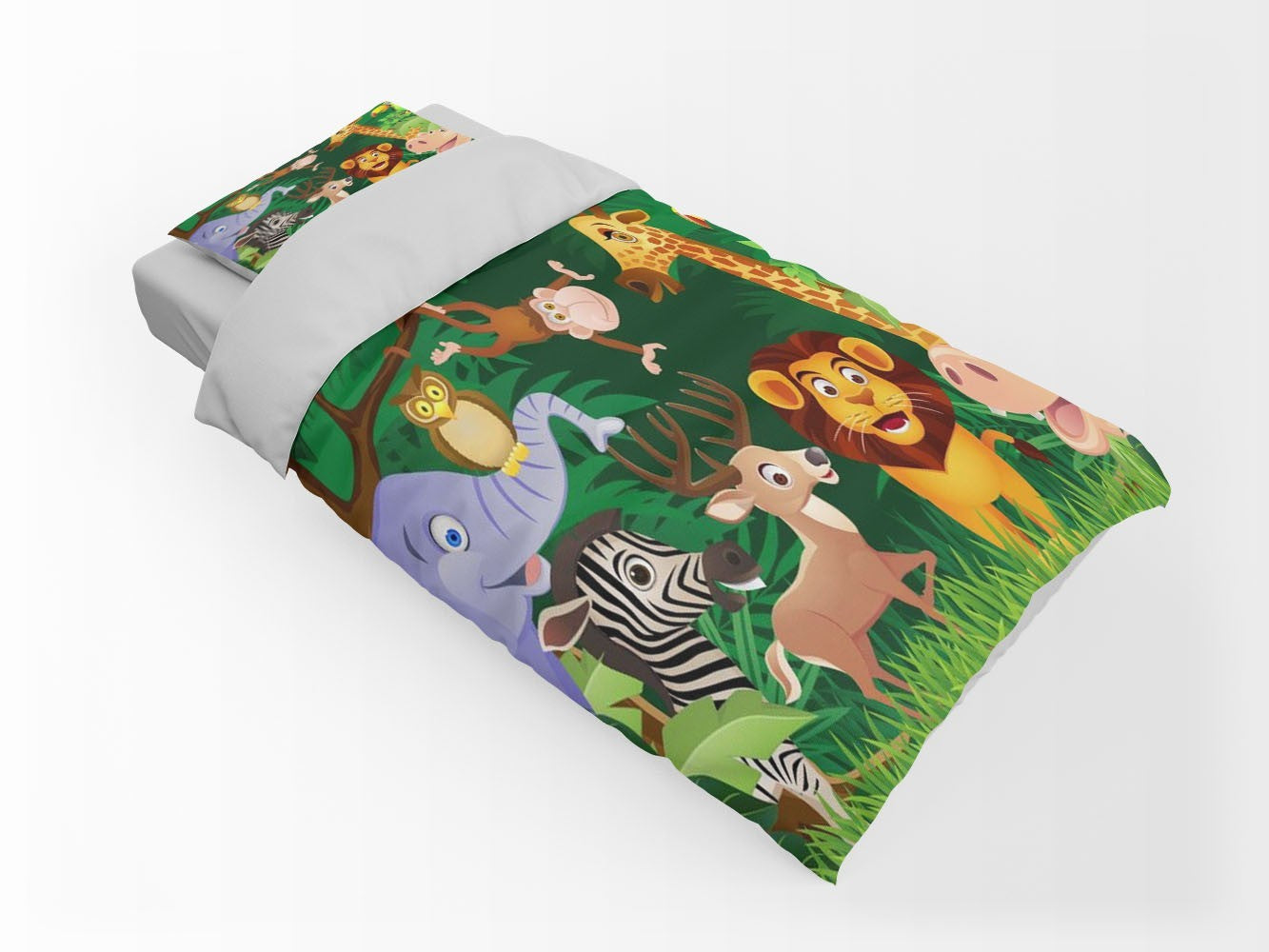 Laughing Animals 2 Duvet Cover Set W Pillow Cover, Green Kids Cartoon 3D Quilt Cover, Single Double Queen King Size Doona Cover