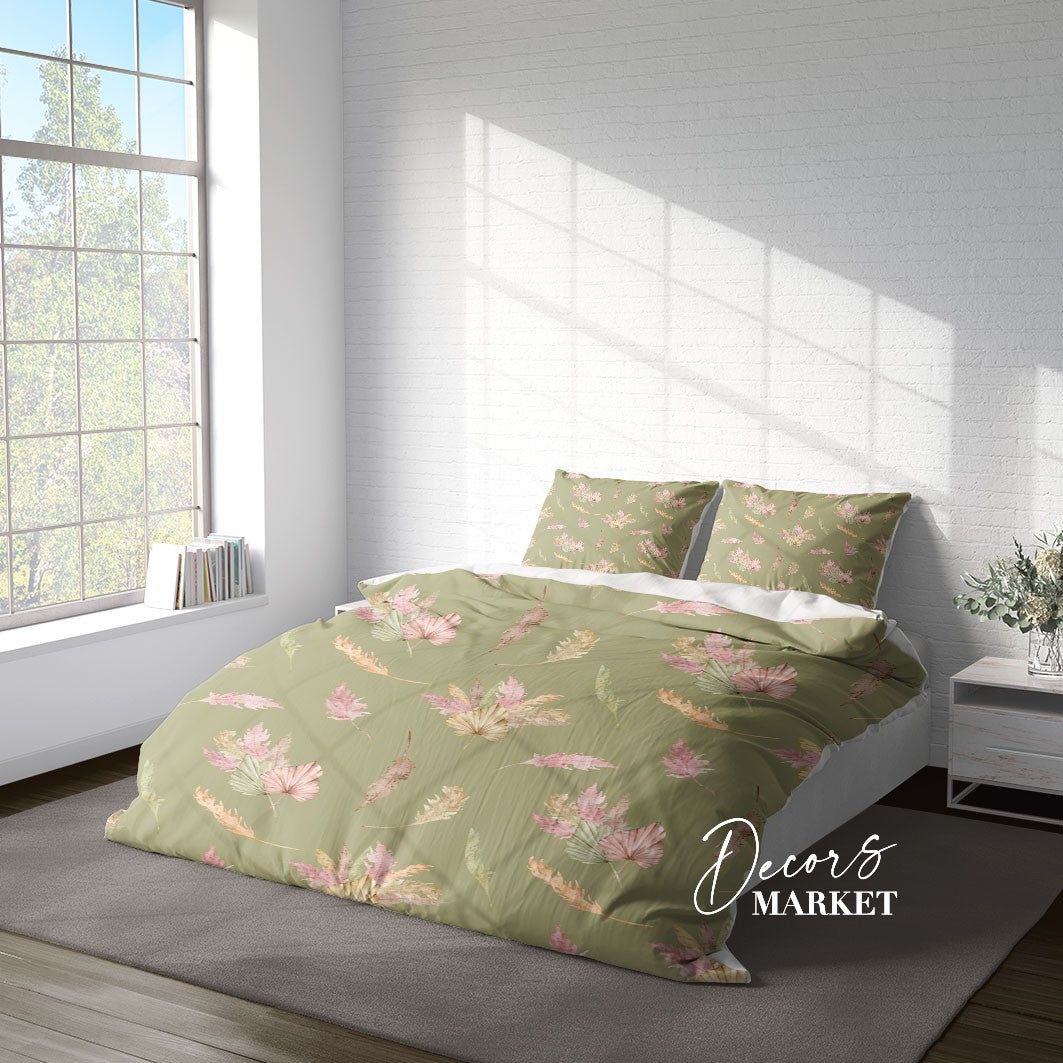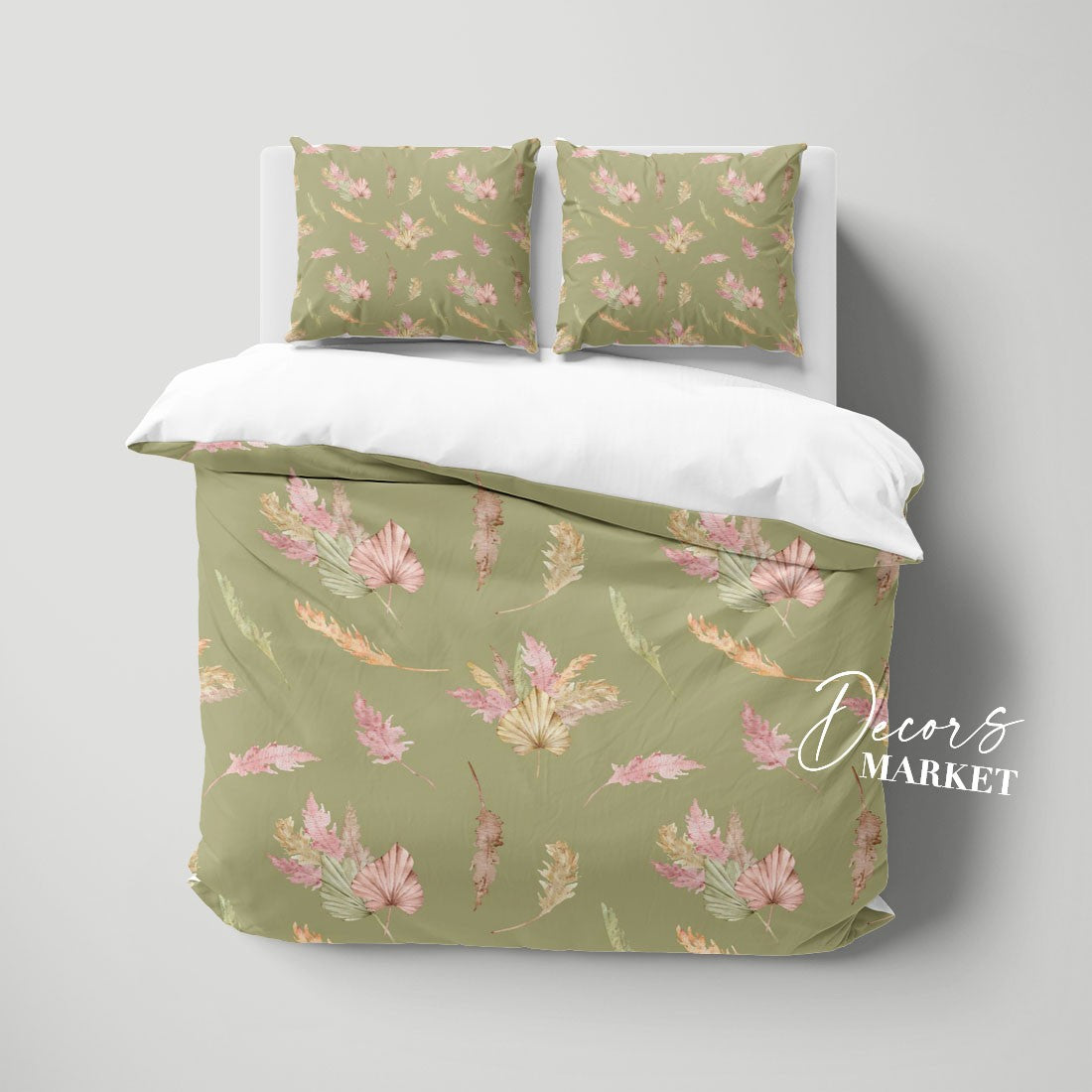 Lavender And Leaves Duvet Cover Set w Pillowcases, Green Floral Leaves 3D Quilt Cover, 3pc Single Double Queen King Size Doona Cover